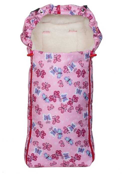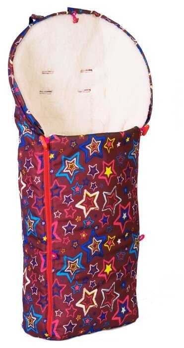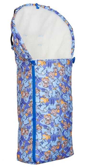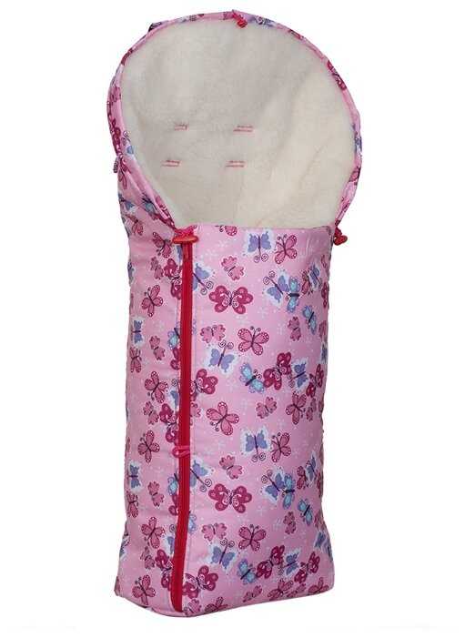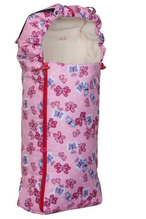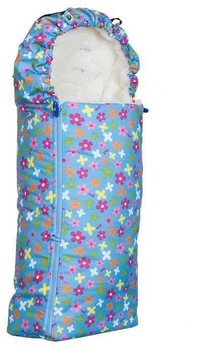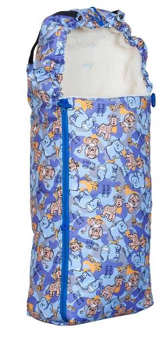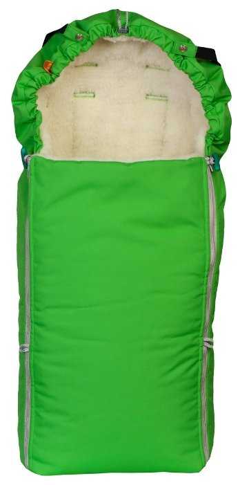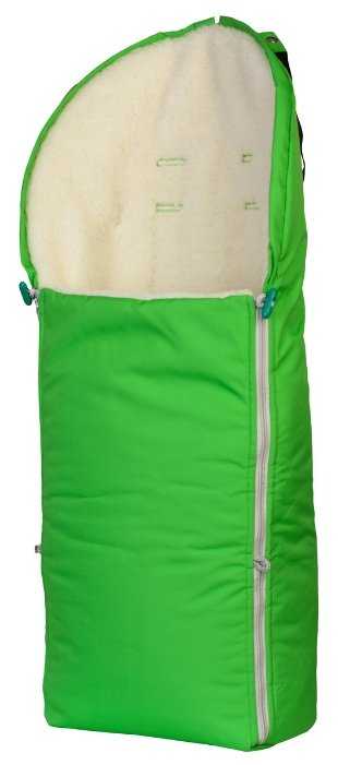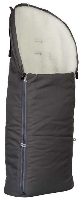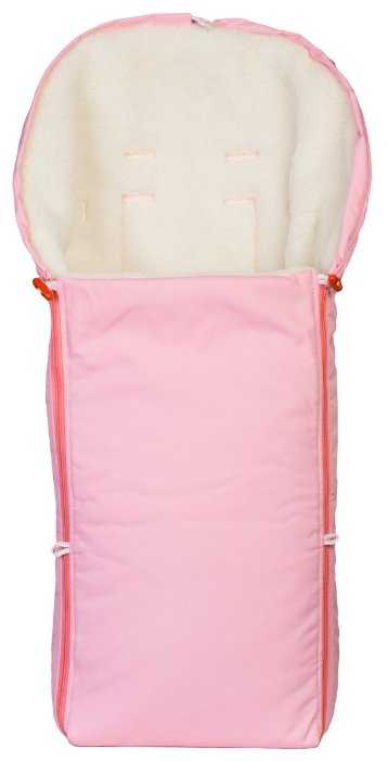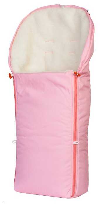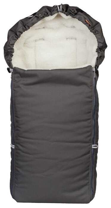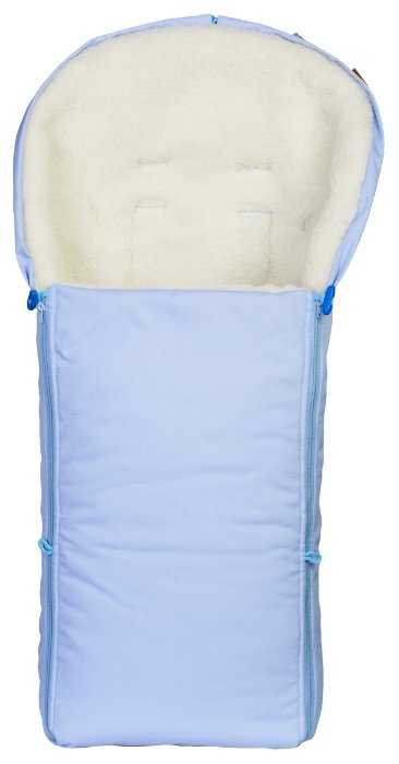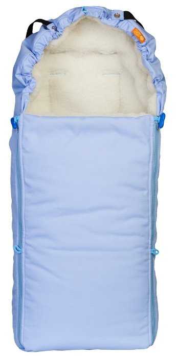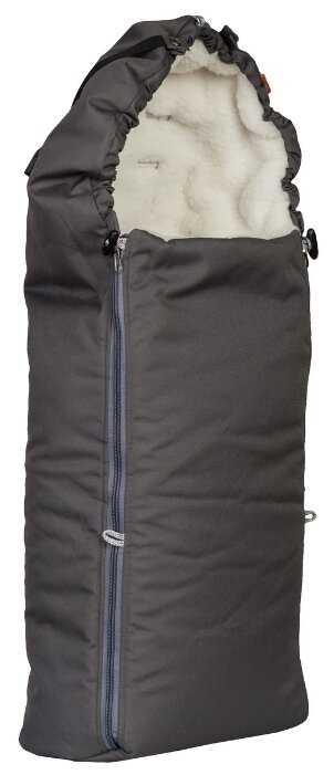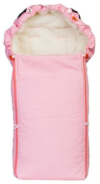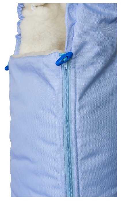 Носить конверт можно в любую погоду. Он сшит из полиэстера, а этот материал хорошо защищает от ветра и от влаги. В качестве утеплителя используется синтепон 200г/м2, внутренняя часть - овечий чес на текстильной основе. Обратите внимание – основа именно тканевая, поэтому конверт легко стирается в машинке. Никакая химчистка не требуется. После покупки я его постирала, встряхнула и вывесила сушиться. Полиэстер расправился, а по меху потом просто обычной...