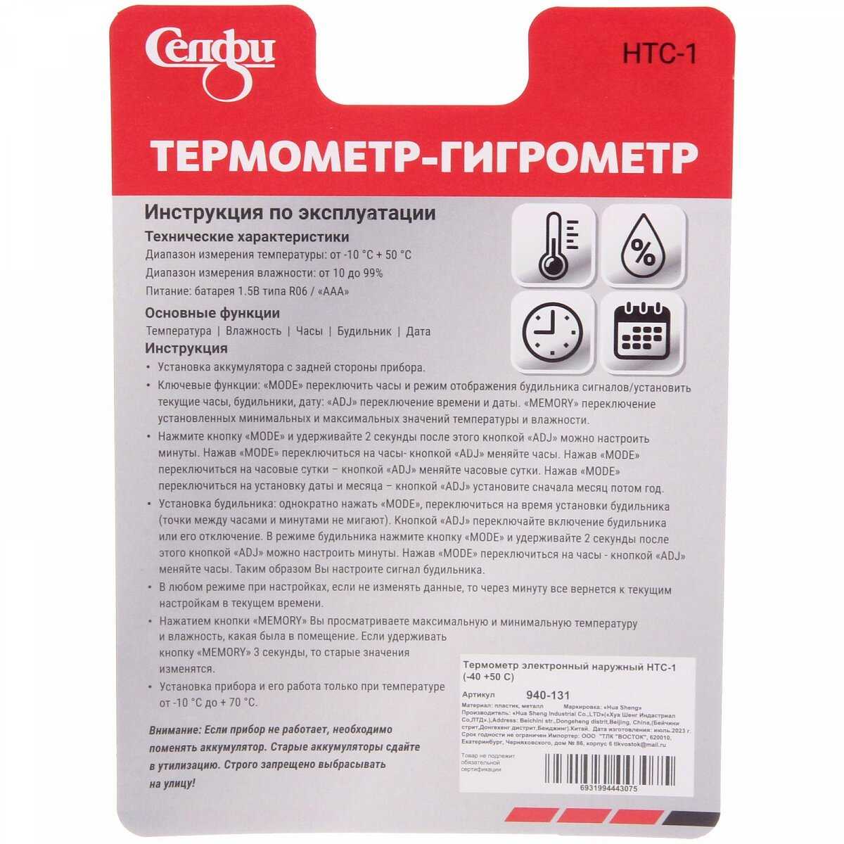 NGY Термометр-гигрометр электронный, HTC-1, ЖК дисплей без выносного датчика