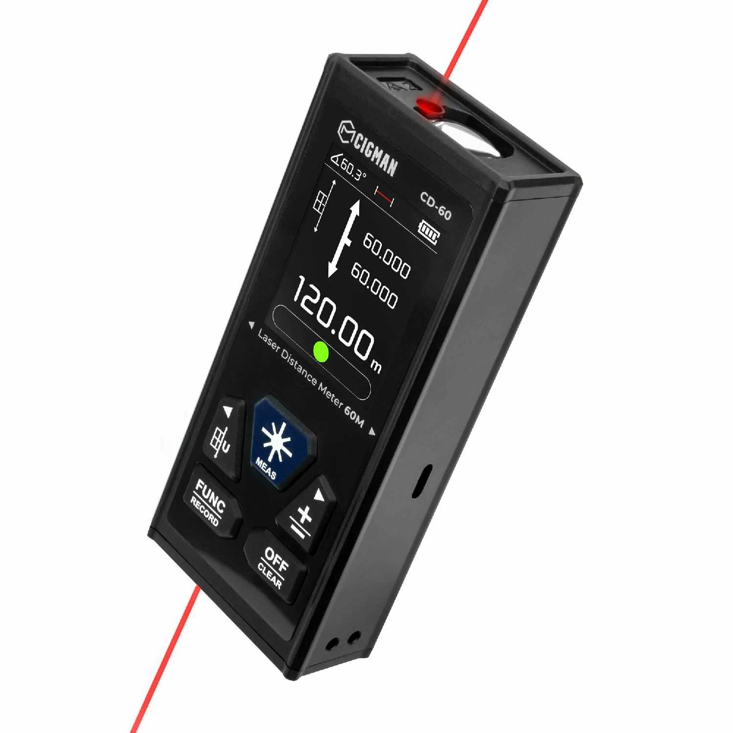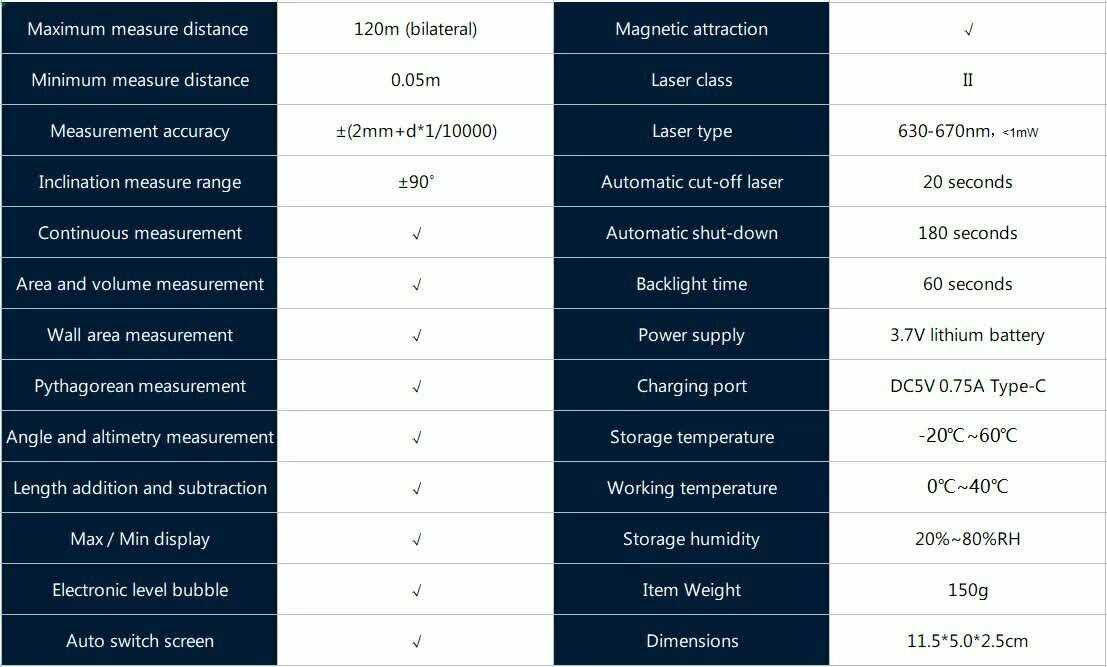 - + Удобство использования, точность, много функций измерений.Встроенный уровень. Два лазера. Зарядка от USB. Удобный футляр.
