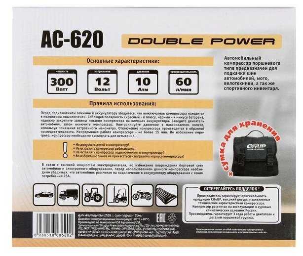 Отзывы о Автомобильный компрессор CityUp Double Power (AC-620)