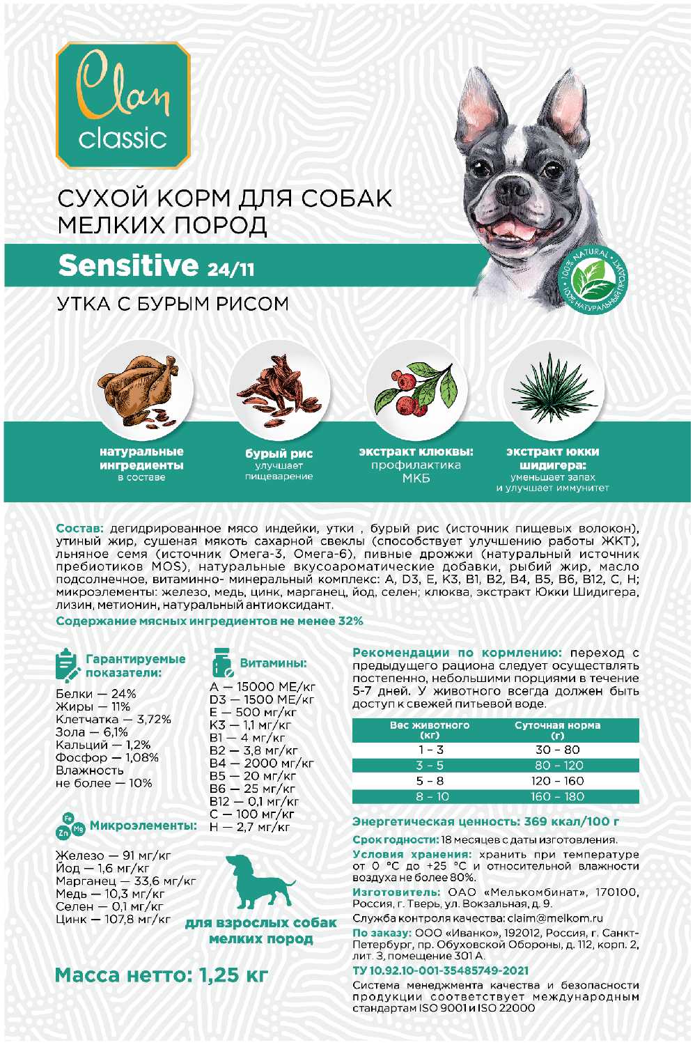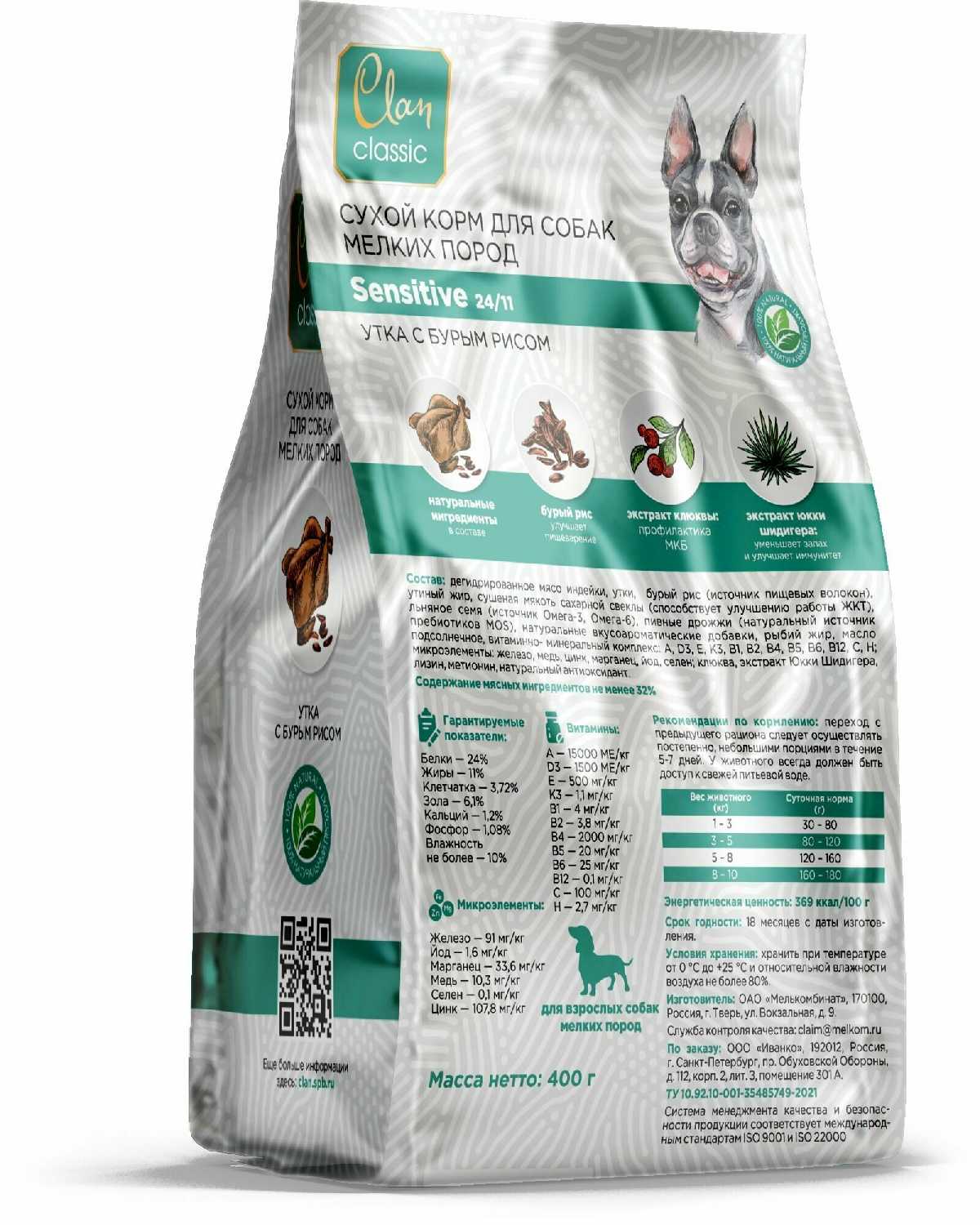 Характеристи CLAN при чувствительном пищеварении (для мелких и карликовых пород)