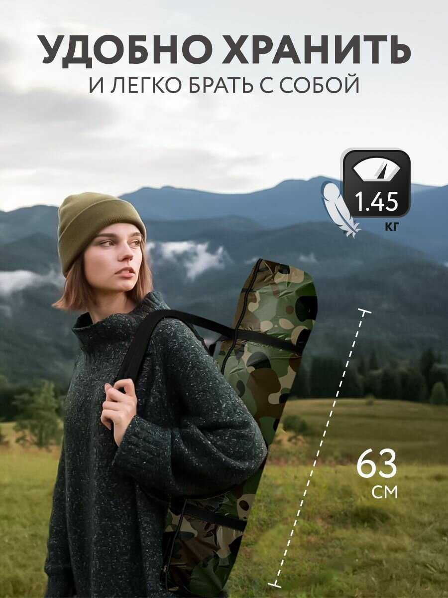 - + Быстро раскладывается, относительно прочная(ветки снизу дно не прокалывают), летнюю ночь (+15) выдерживает.