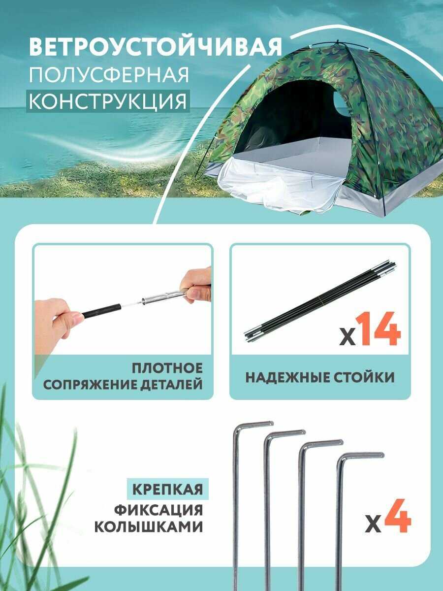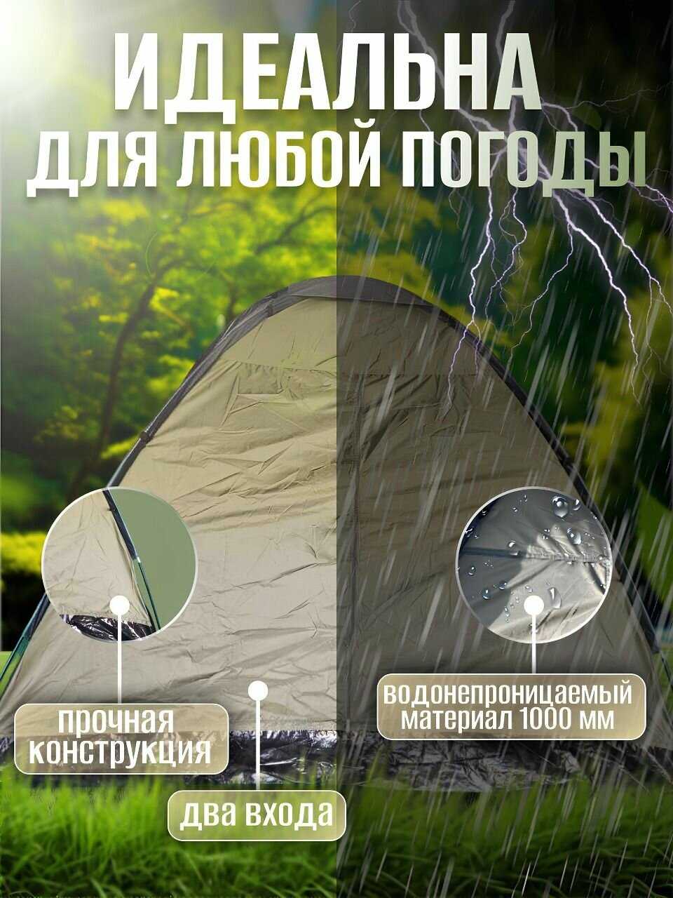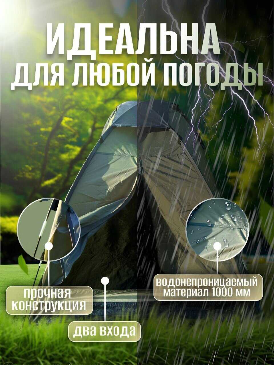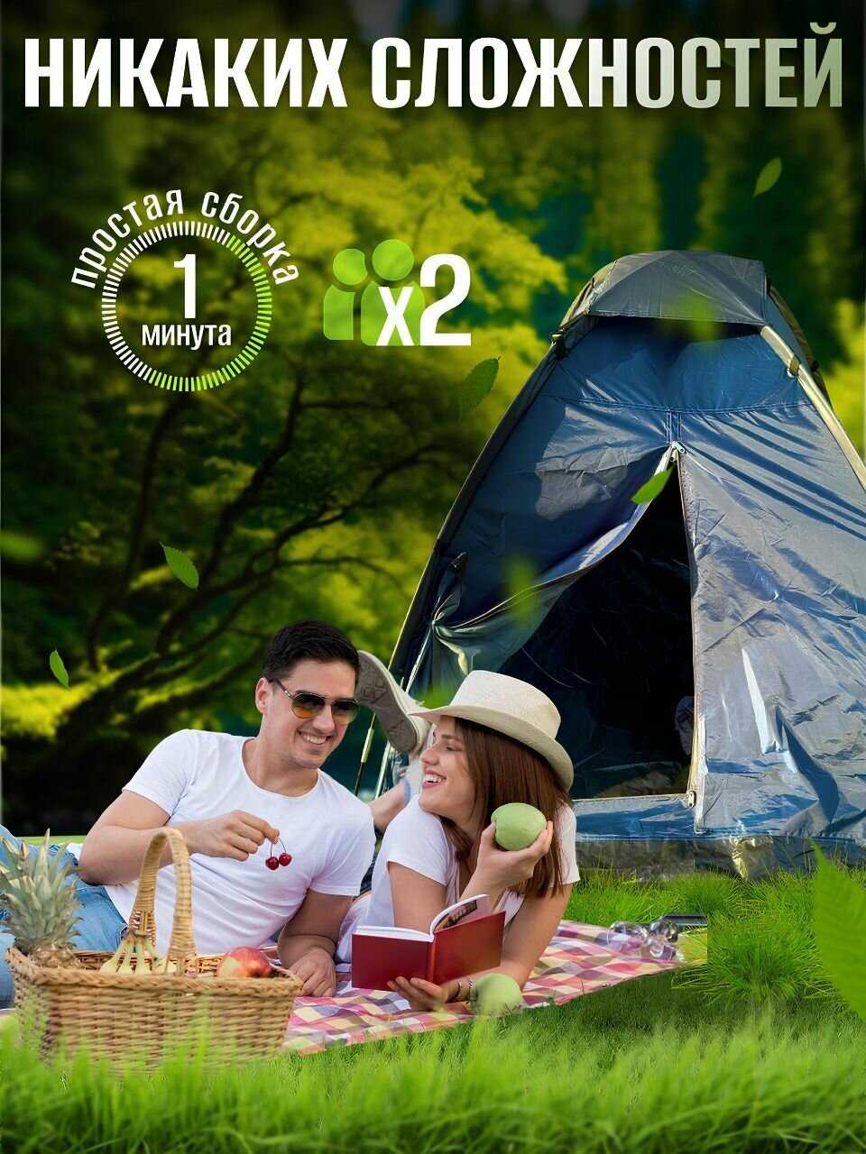 - + Автоматическая сборка — палатка собирается всего за минуту.