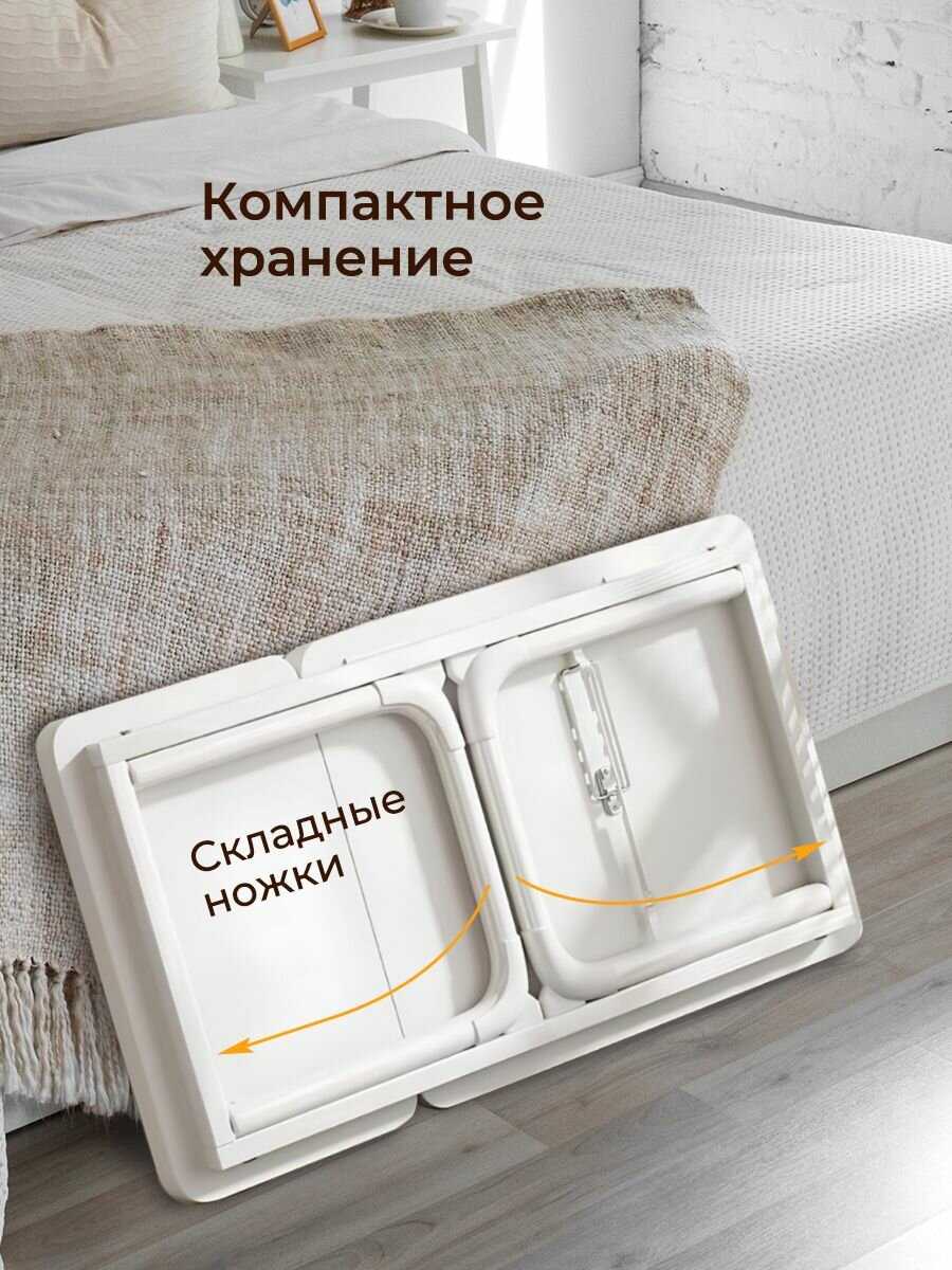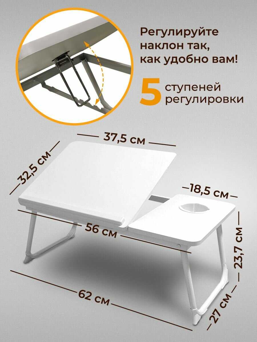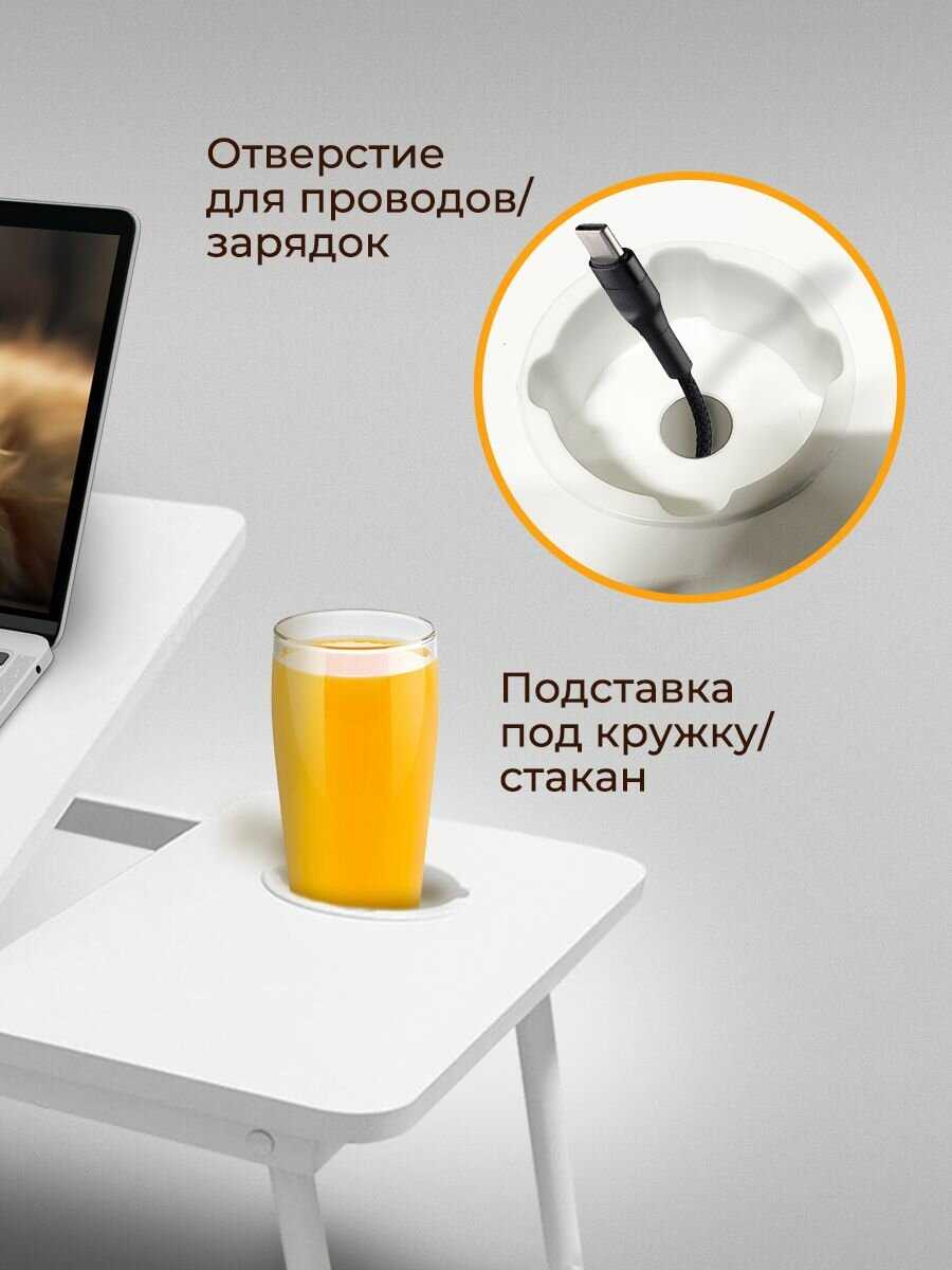 - + удобно, металлические ножки и механизм крепления части для ноутбука выглядят надёжно, подстаканник вынимается.