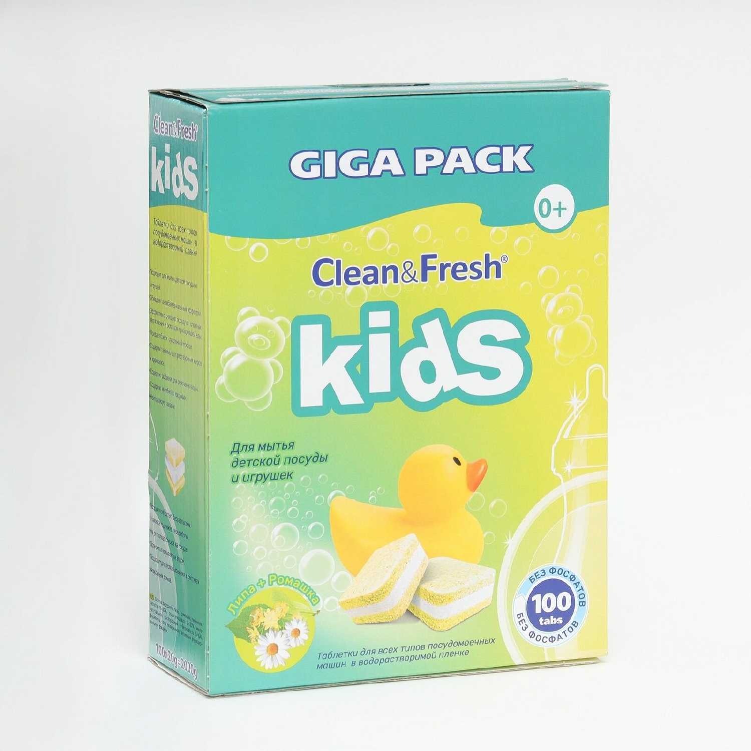 | Комплектация : | Таблетки для посудомоечных машин «Clean & Fresh» KIDS All in 1, 100 шт. 1 набор |