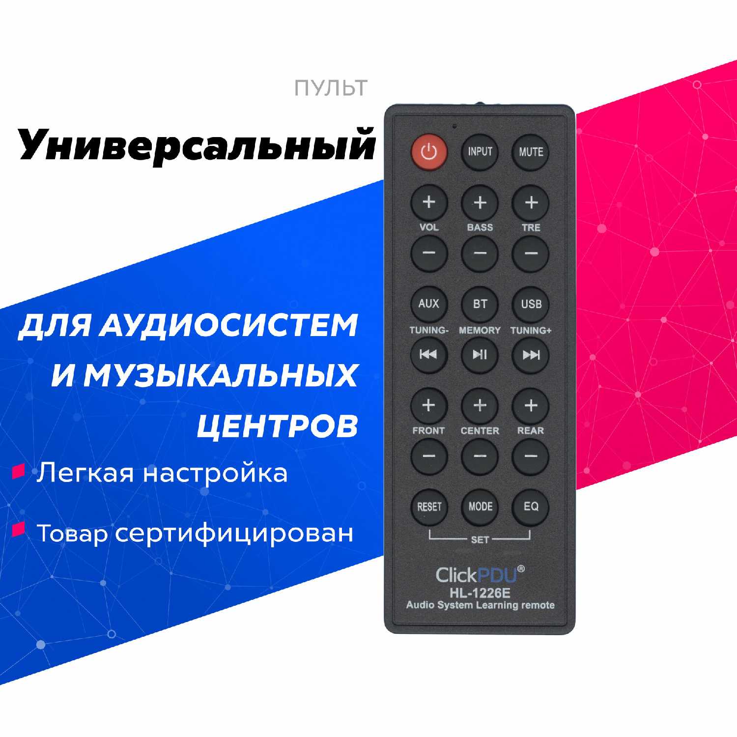 у меня развалился родной пульт от музыкального центра. Их не продают. Пробовал обучить телевизионный - не срослось, не понимают друг друга. А этот тут же подхватил весь функционал, который был нужен. Пульт маленький, выглядит несколько хлипко, ну, посмотрим, сколько прослужит. Во всяком случае, он включает-выключает, громкость регулирует, источники переключает, мьютит, и ещё кнопки остались в резерве.
