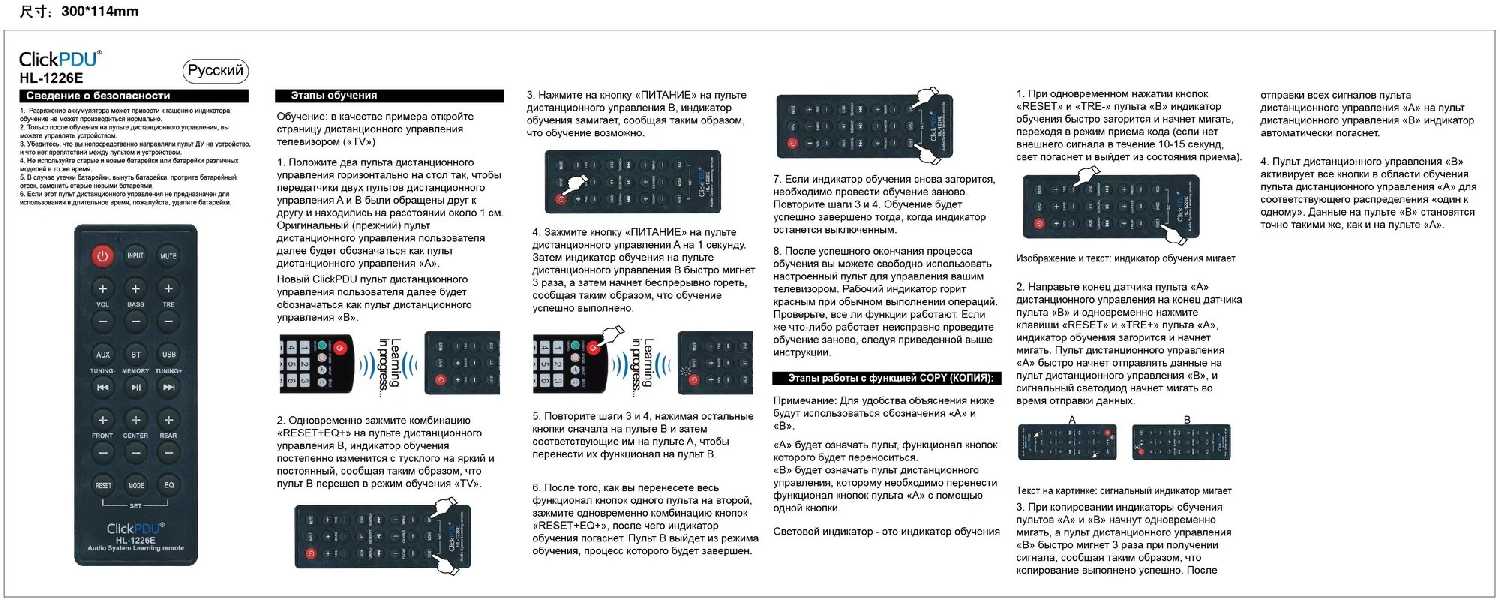 Характеристи ClickPDU Обучаемый пульт