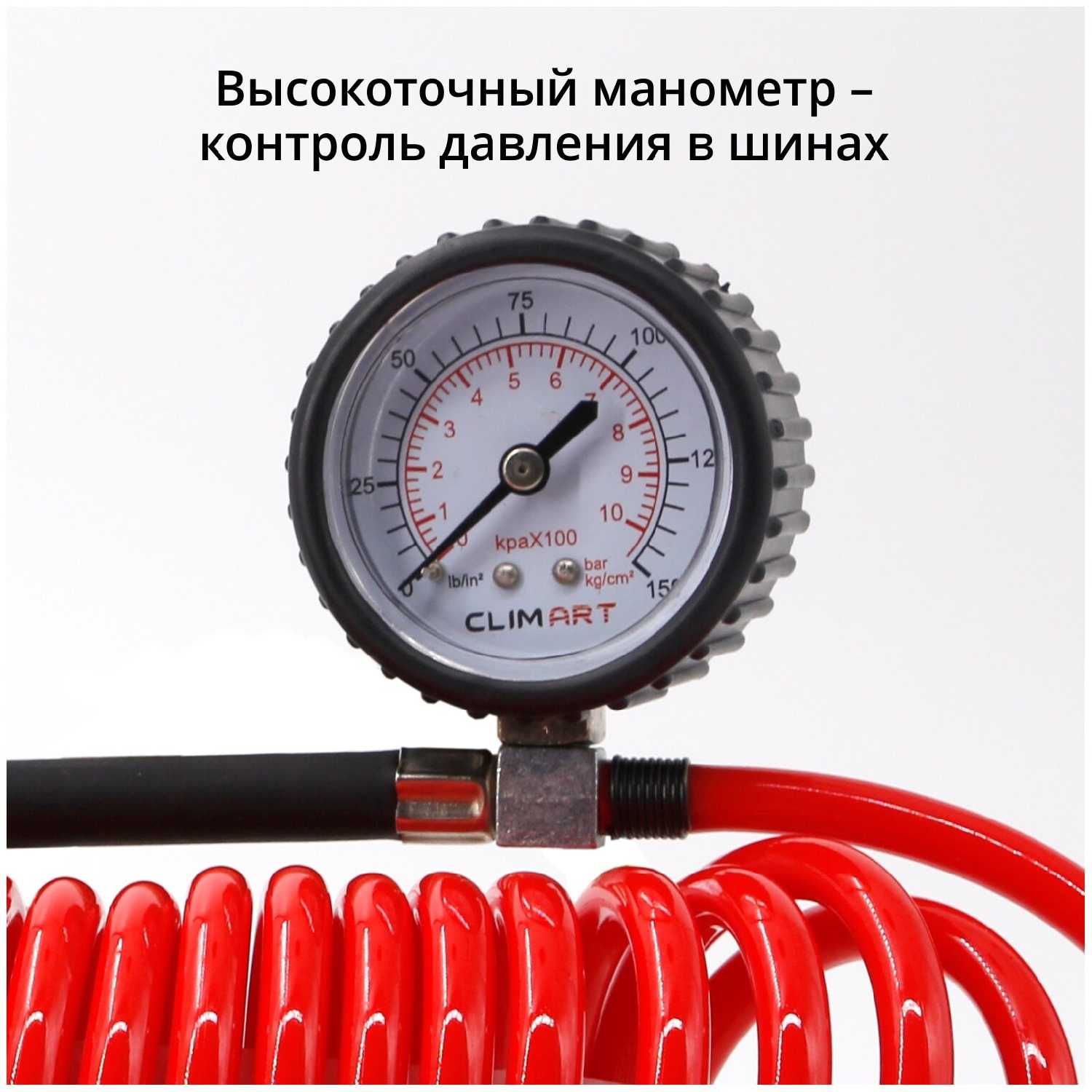 Манометр, расположенный непосредственно на шланге, в большинстве случаев показывает четко, но некоторые пользователи отмечают расхождения с бортовым компьютером авто (погрешность 0.1-0.2 бара). Важно: на морозе возможны неточности, а для калибровки рекомендуется сверяться с эталонным прибором после покупки. -