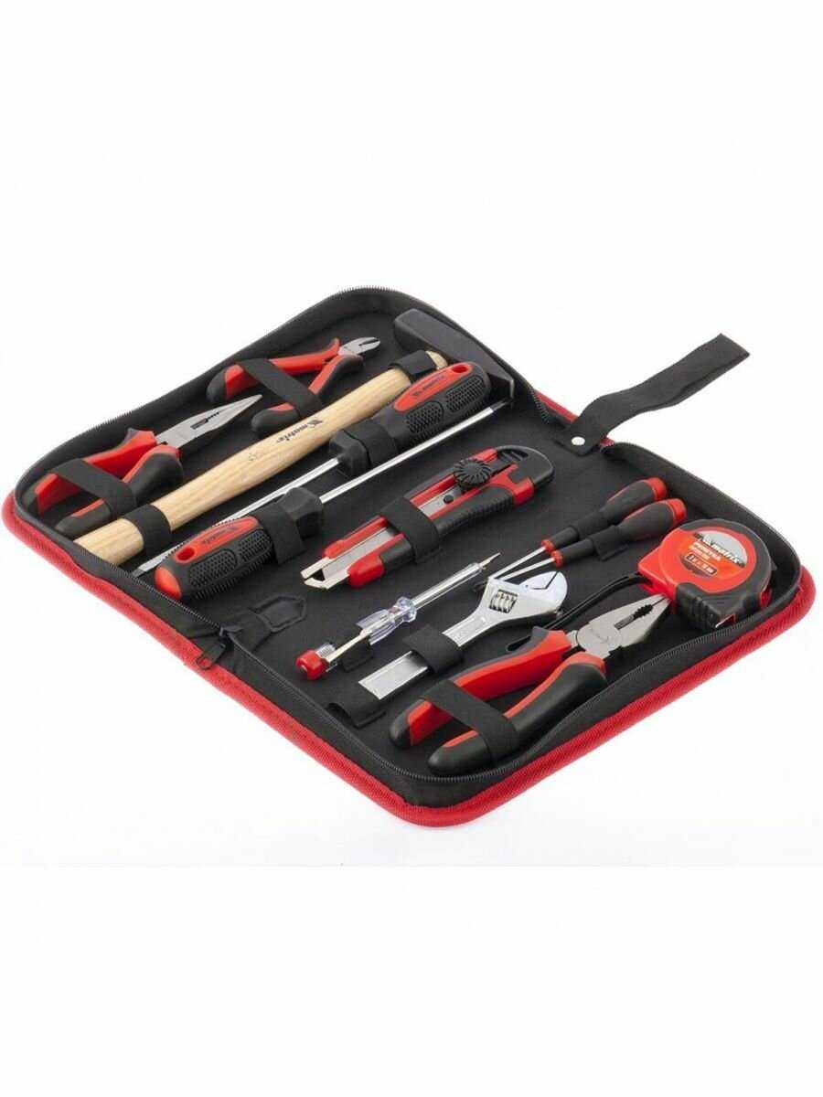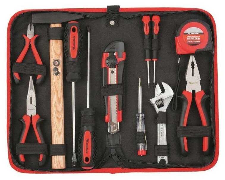 Дополнительная информация : | Комплектация товара Отвертки PH, SL 2 шт Отвертки для точных работ 2 шт Отвертка-тестер 1 шт Рулетка 1 шт Нож технический 1 шт Молоток 1 шт Ключ разводной 1 шт Плоскогубцы 1 шт Бокорезы 1 шт Длинногубцы прямые 1 шт Сумка-органайзер 1 шт |