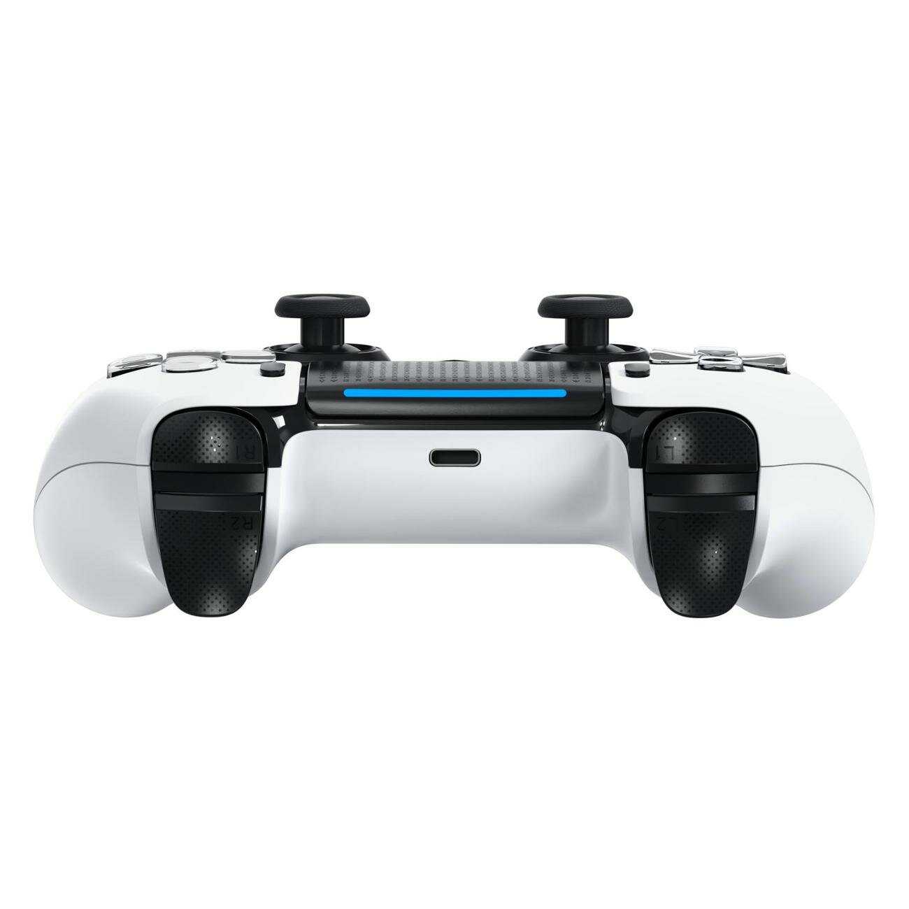 - + Отличный красивый и крепкий геймпад. 1.Наличие 2 дополнительных программируемых кнопок, по умолчанию дублирующих нажатие стиков. 2.Без проблем подключается по Bluetooth к ПК, сигнал не теряет. 3.В Стиме определяется как PS4 Controller, все поддерживающие игры работают прекрасно.