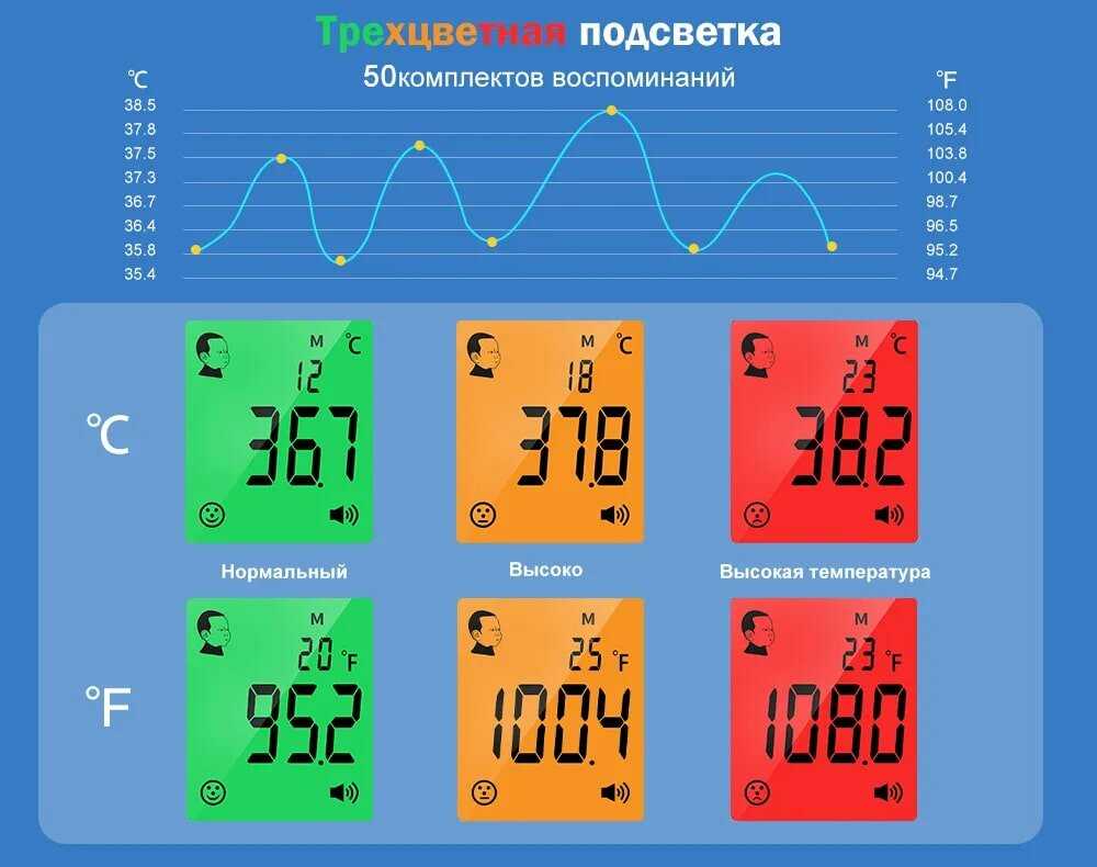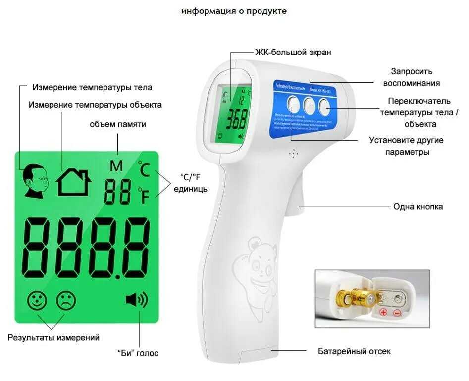 Дополнительная информация : | Измерения производить при комнатной температуре на расстоянии 1-3 см от лба. |