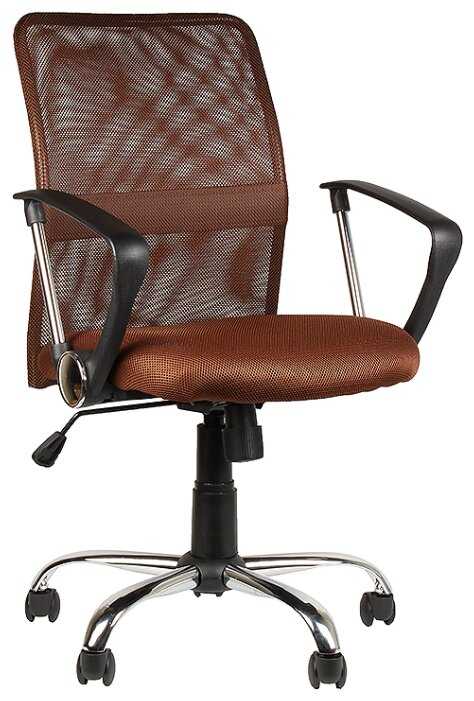Неплохо выглядит, хромированные части подлокотников и крестовина.