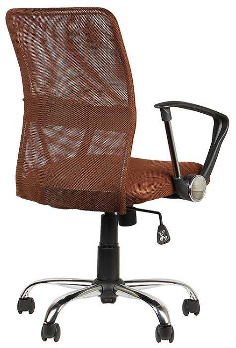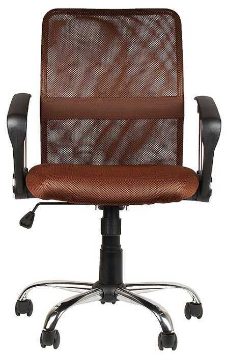 Неплохо выглядит, хромированные части подлокотников и крестовина.