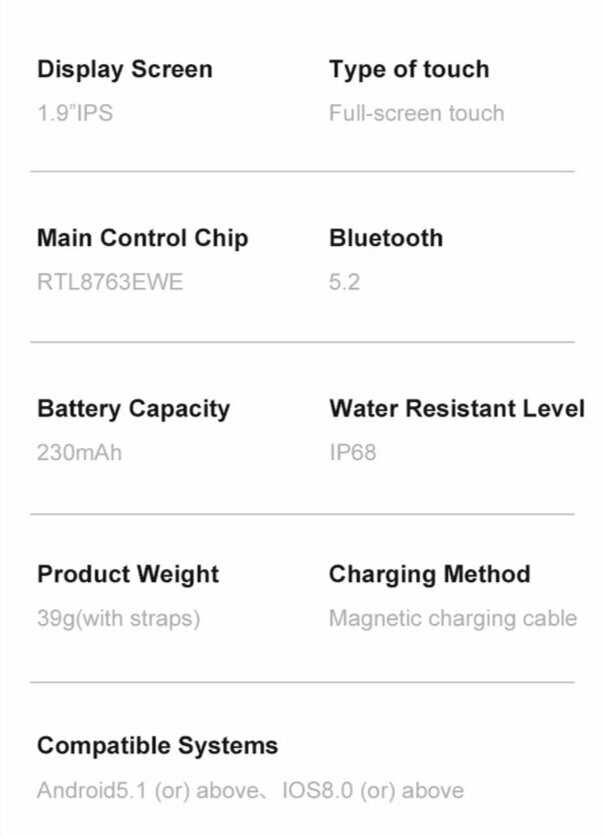 Особенности : | магнитная зарядка, поиск смартфона, поиск часов, фонарик |