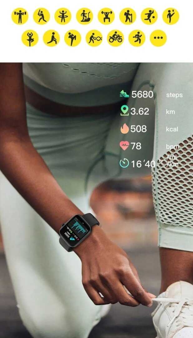 Мониторинг : | водный баланс, калорий, пульса, сна, температуры тела, термометр, тонометр, уровня кислорода в крови, физической активности |