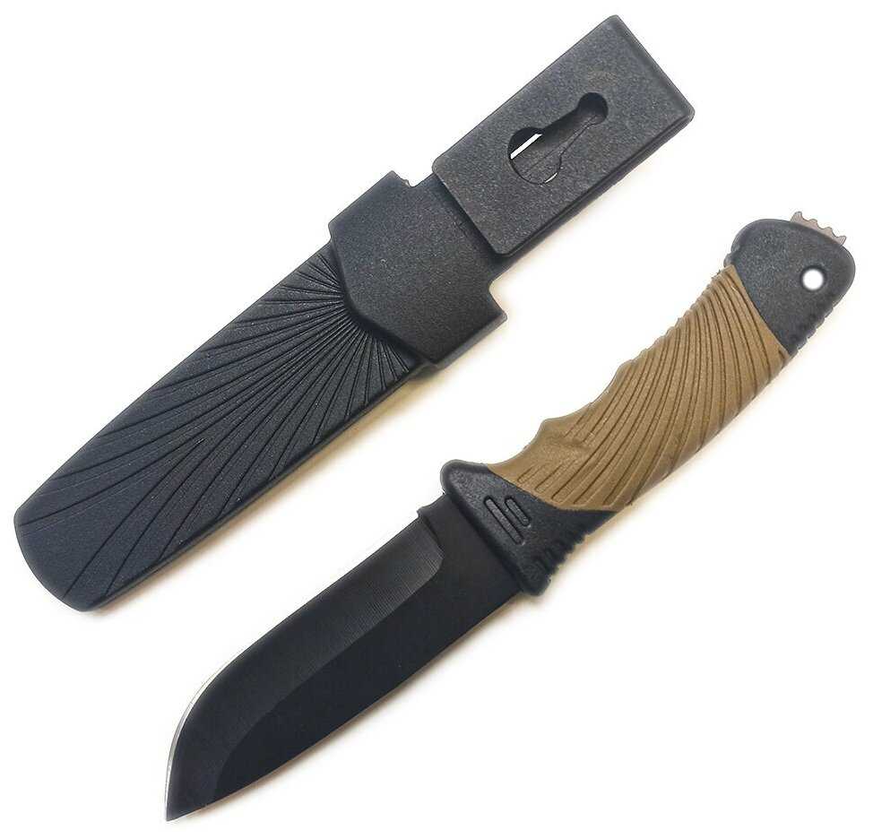 - Двусторонние пластиковые ножны плотно удерживают клинок при активном движении, предотвращая случайное выпадение.