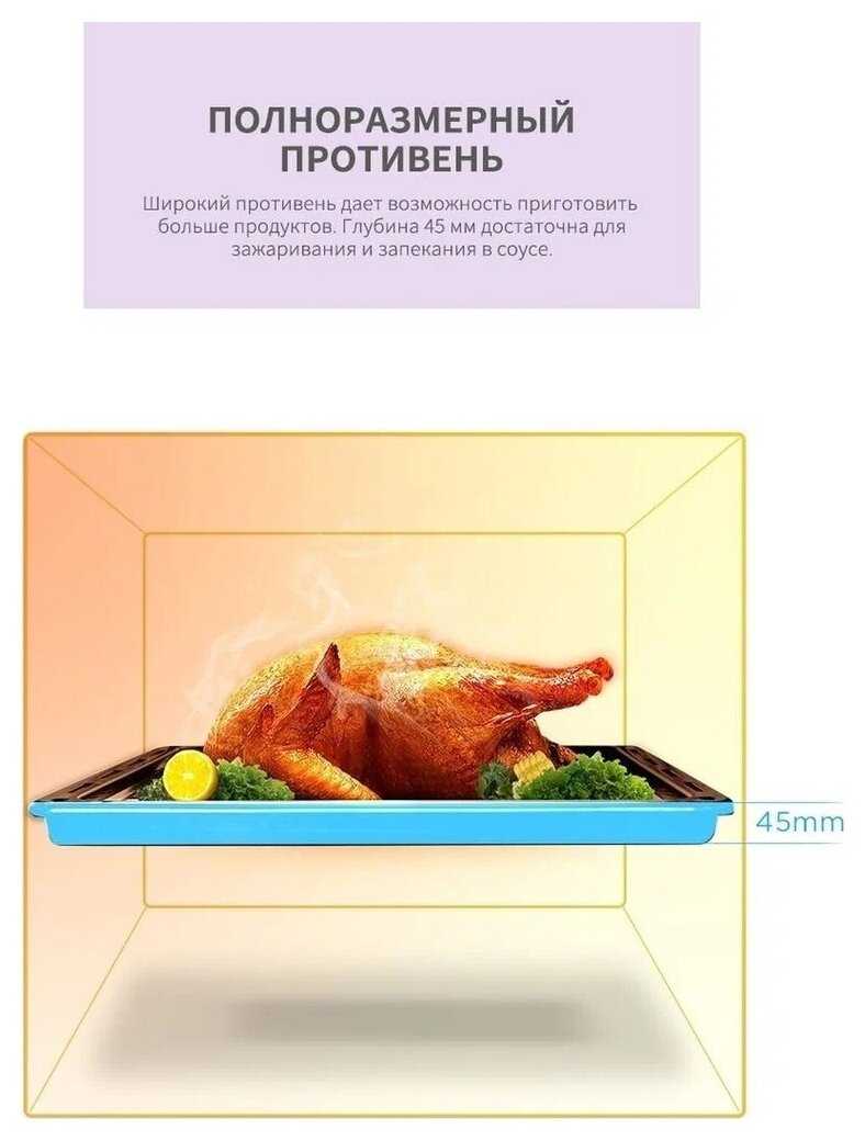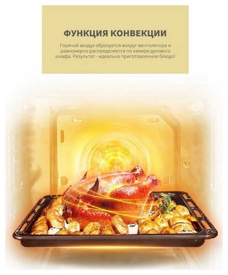 - + Работает идеально, все функции рабочие, без нареканий. Достаточно тихая, если не включать конвекцию то и понять что она работает можно только по свету в духовке.