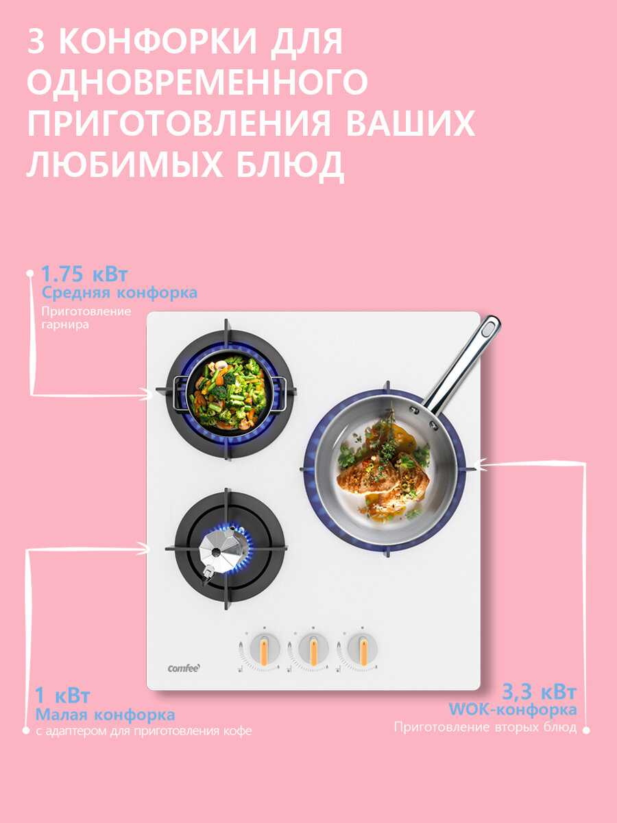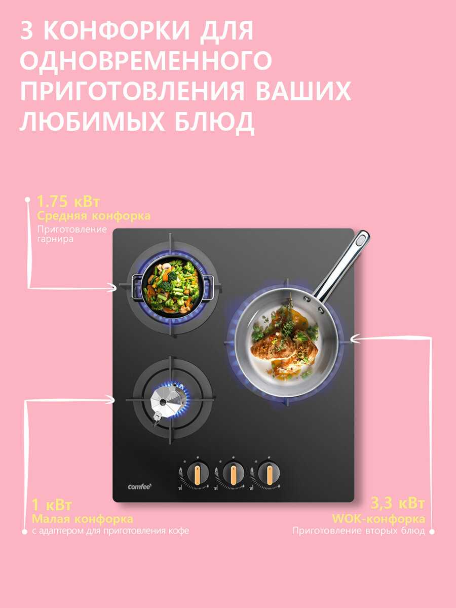 - - На трех конфорках одновременно не получится готовить (на двух да), только если маленькие кастрюльки будут.