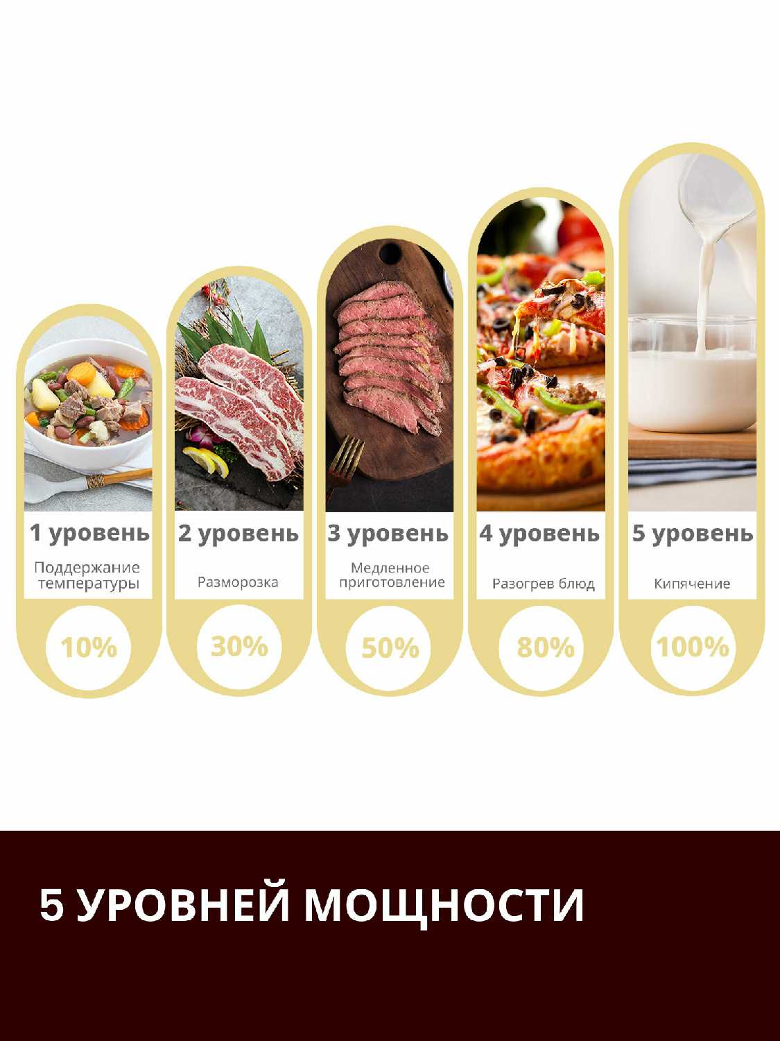 | Дополнительные режимы : | автоматическое приготовление, звуковой сигнал отключения, ускоренная разморозка |