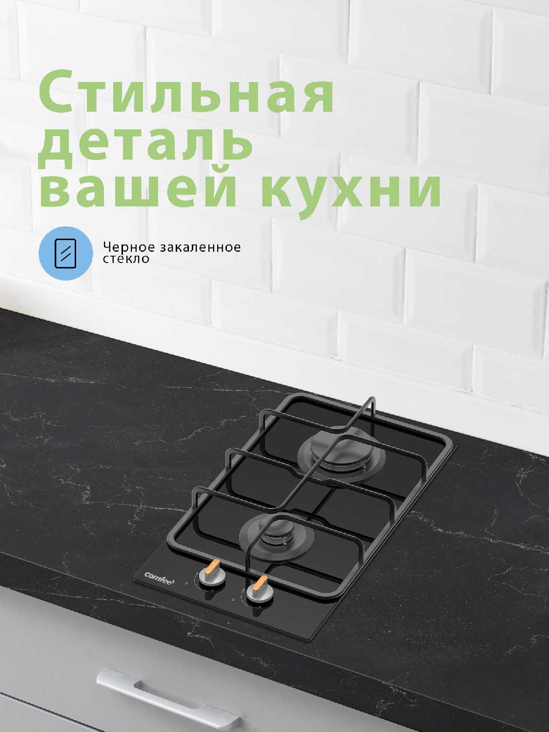Идеальна для дач, небольших кухонь или помещений с ограниченным пространством благодаря компактным размерам (две конфорки). Пользователи подтверждают, что такого количества конфорок достаточно даже для активной готовки. Панель органично вписывается в интерьер студий и малогабаритных кухонь.