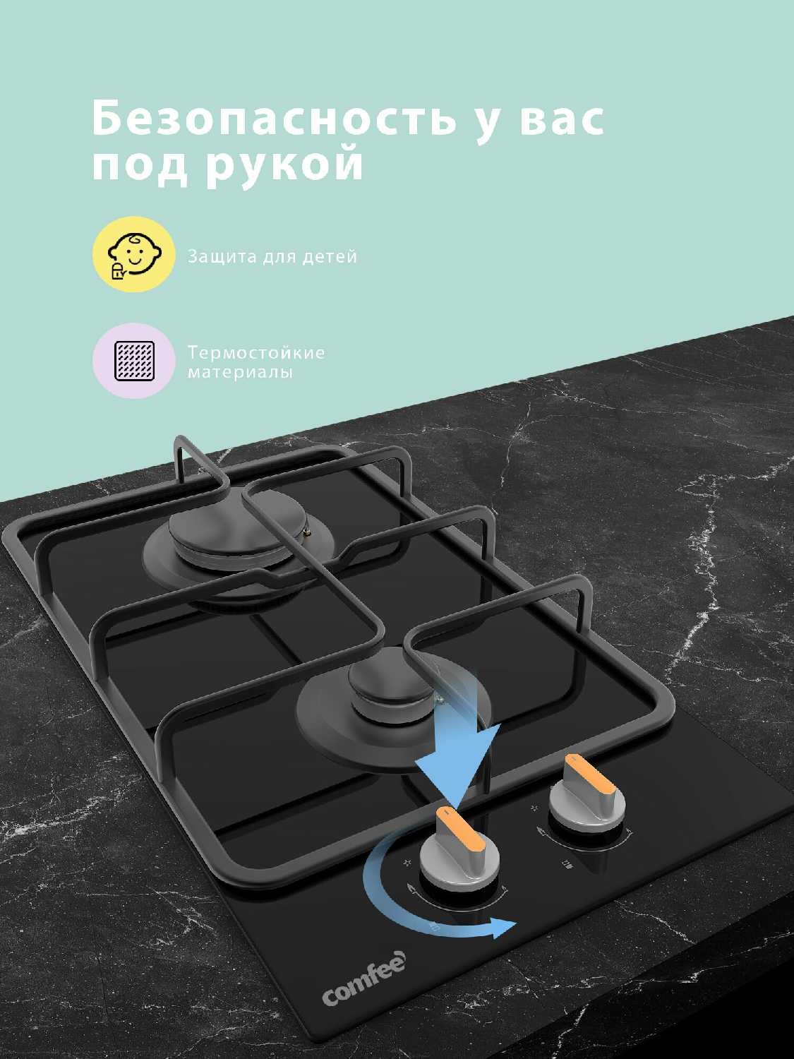 - Расстояние между конфорками предотвращает "съезжание" посуды, в отличие от аналогов.