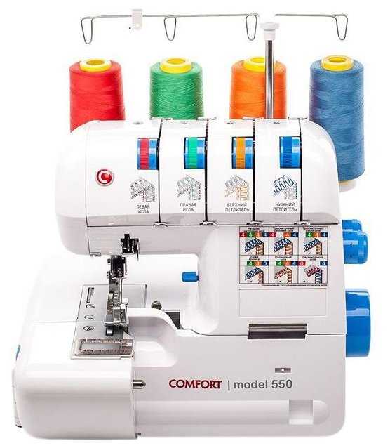 В общем Оверлок Comfort 550 достойная модель для домашнего использования. Легкая заправка нитей, в использовании не очень шумный и компактный. Два года назад приобрела Оверлок Comfort 140.... в работе он пробыл менее года и по непонятной причине перестал работать... мастер тоже не нашел причину поломки.... Очень надеюсь что Оверлок Comfort 550 прослужит долго.
