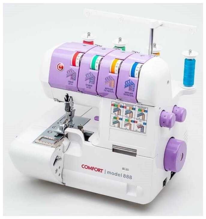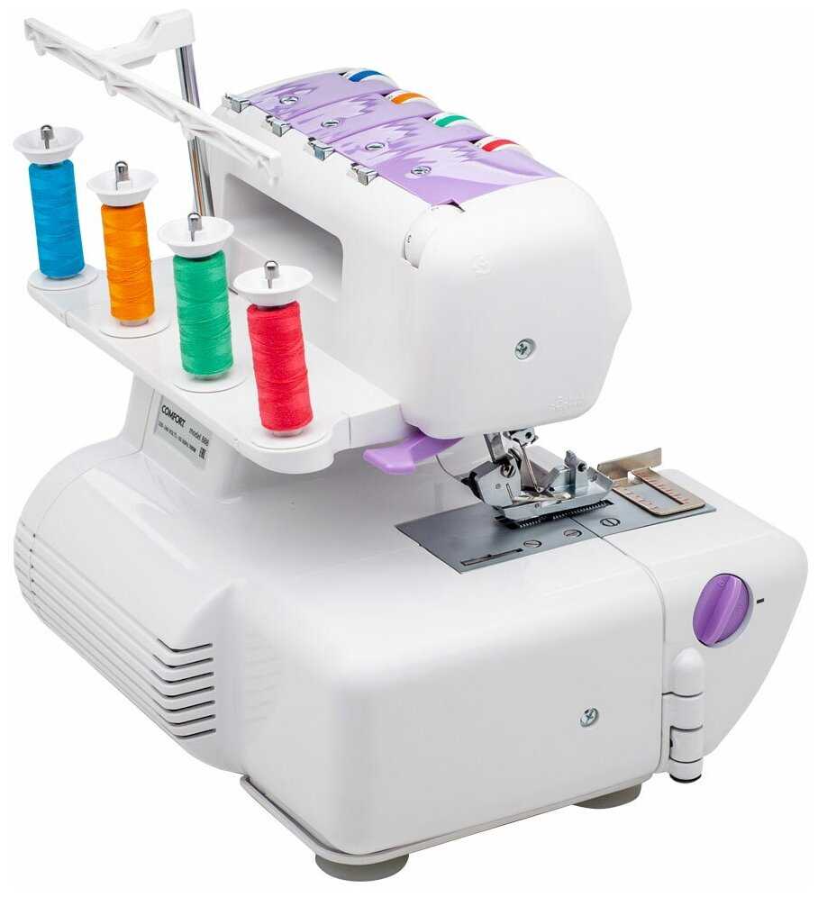 под крышкой столько всего уместилось. до этого купила швейную машинку этой фирмы, решила купить и оверлок комфорт. рекомендую.
