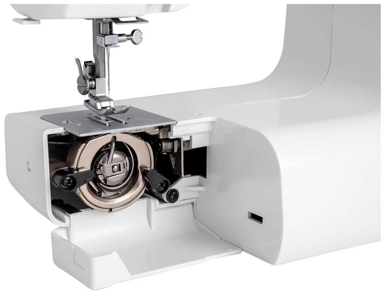 - Съёмная крышка над челноком обеспечивает быстрый доступ для чистки.
