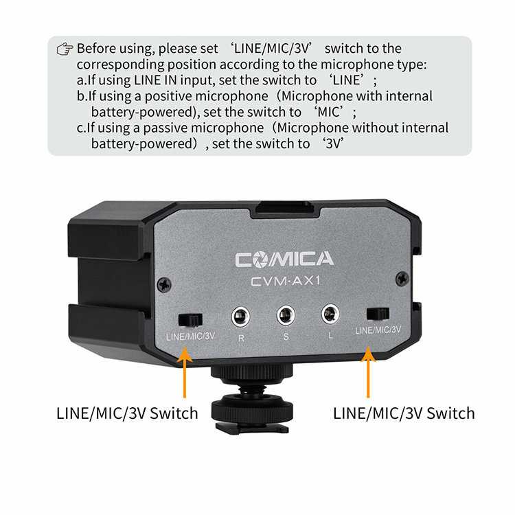 Характеристи Comica Микшер двуканальный (CVM-AX1)