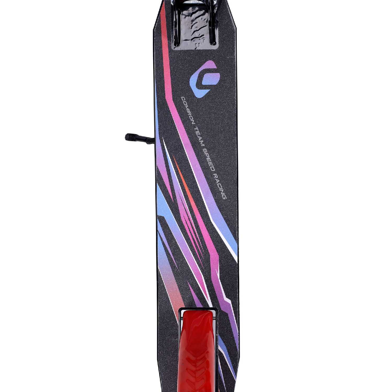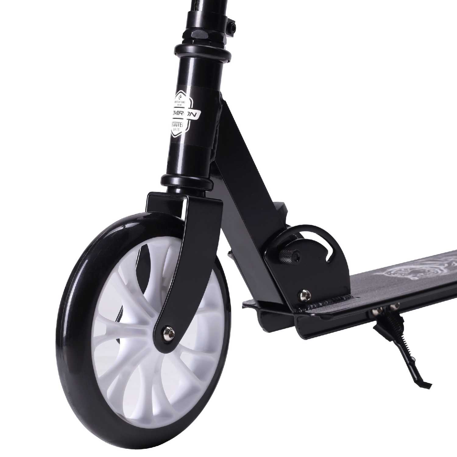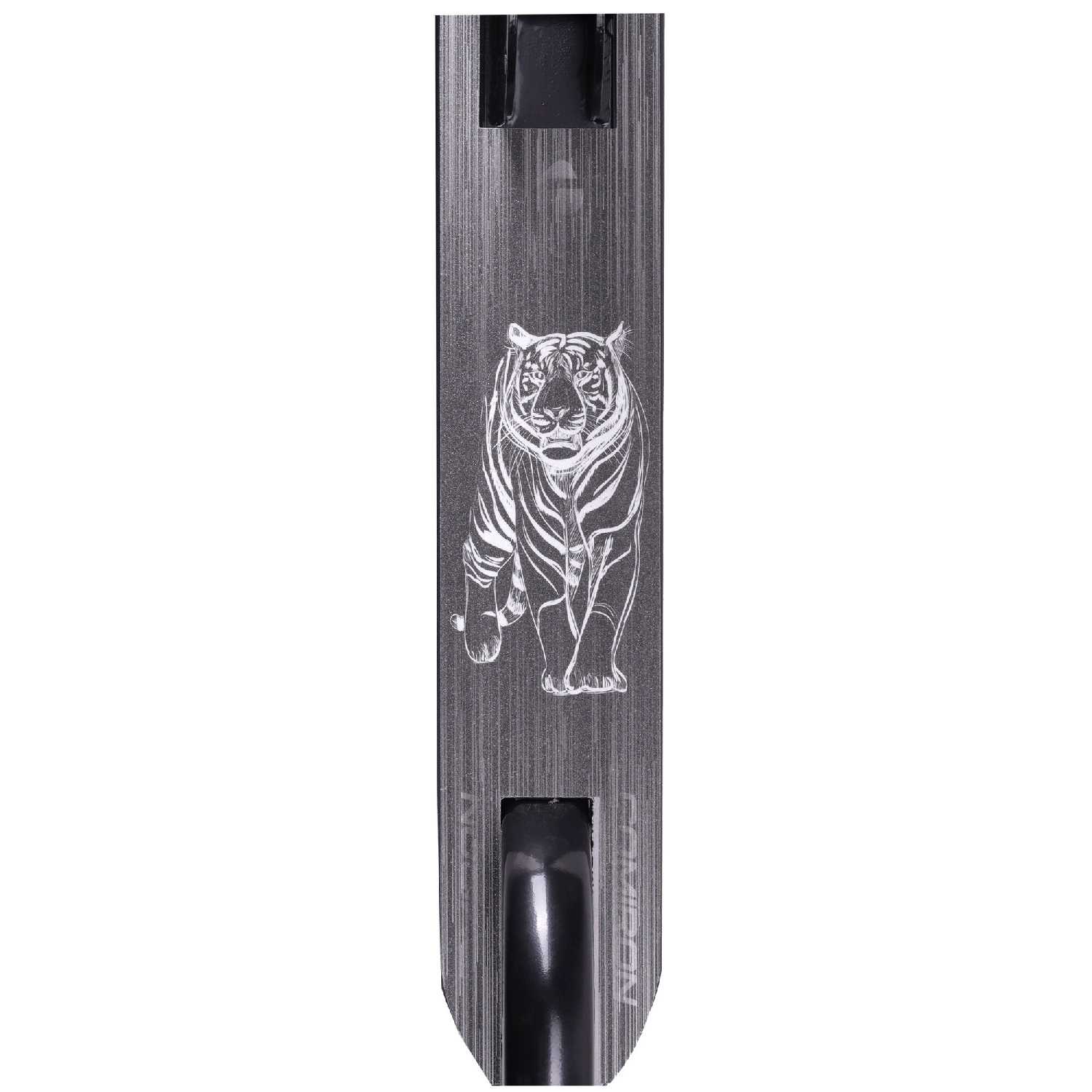 Дека имеет удобную для детской ноги ширину и длину, а ее металлическое основание обеспечивает необходимую жесткость и прочность. Антискользящее покрытие на верхней части платформы призвано повысить безопасность, но его исполнение часто критикуют — оно бывает наклеено криво и с пузырями, что портит вид и снижает эффективность. Сама платформа не прогибается под весом ребенка и обеспечивает уверенную стойку. Наличие подножки является приятным и полезным дополнением для кратковременных остановок. -