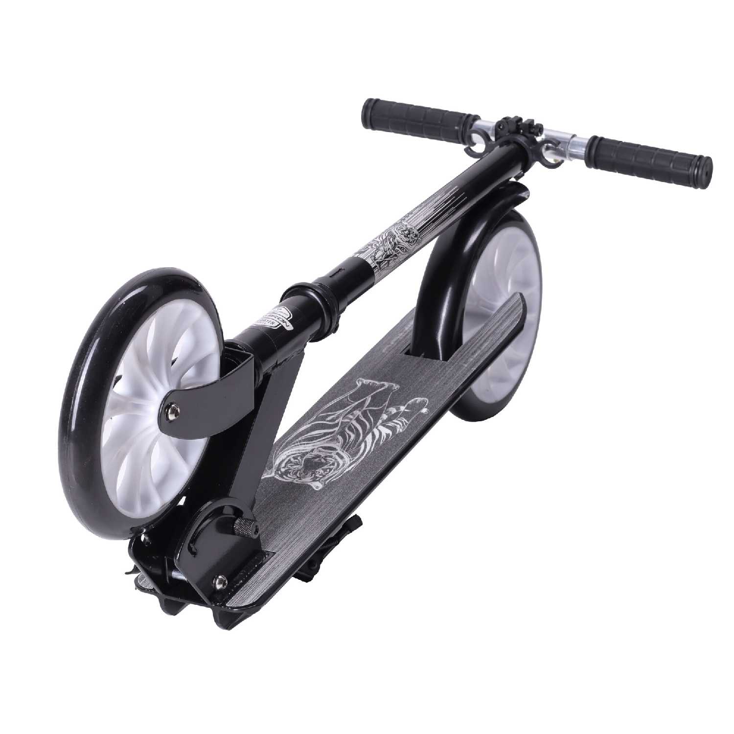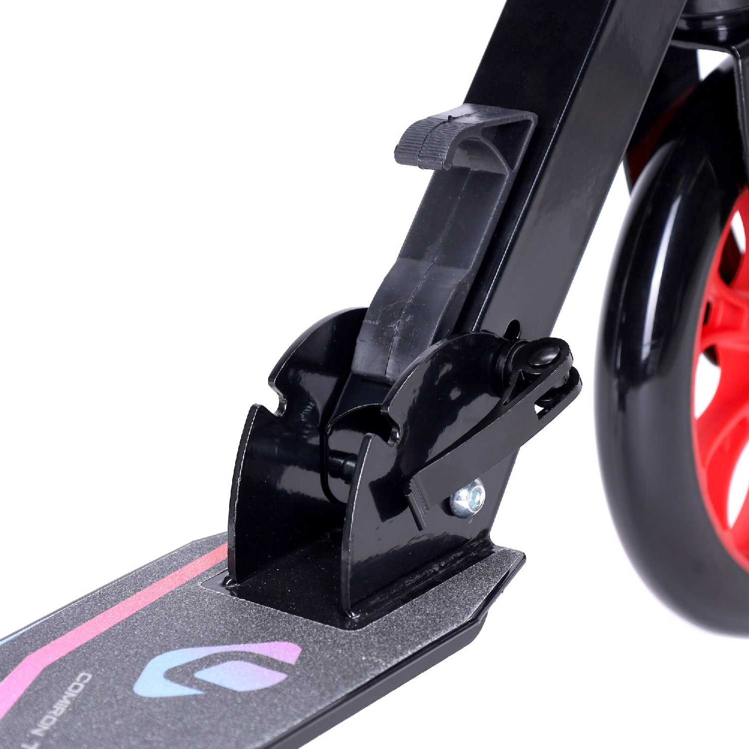 - Отсутствие фиксации руля в сложенном состоянии затрудняет переноску, так как дека болтается, повышая риск задеть окружающих.