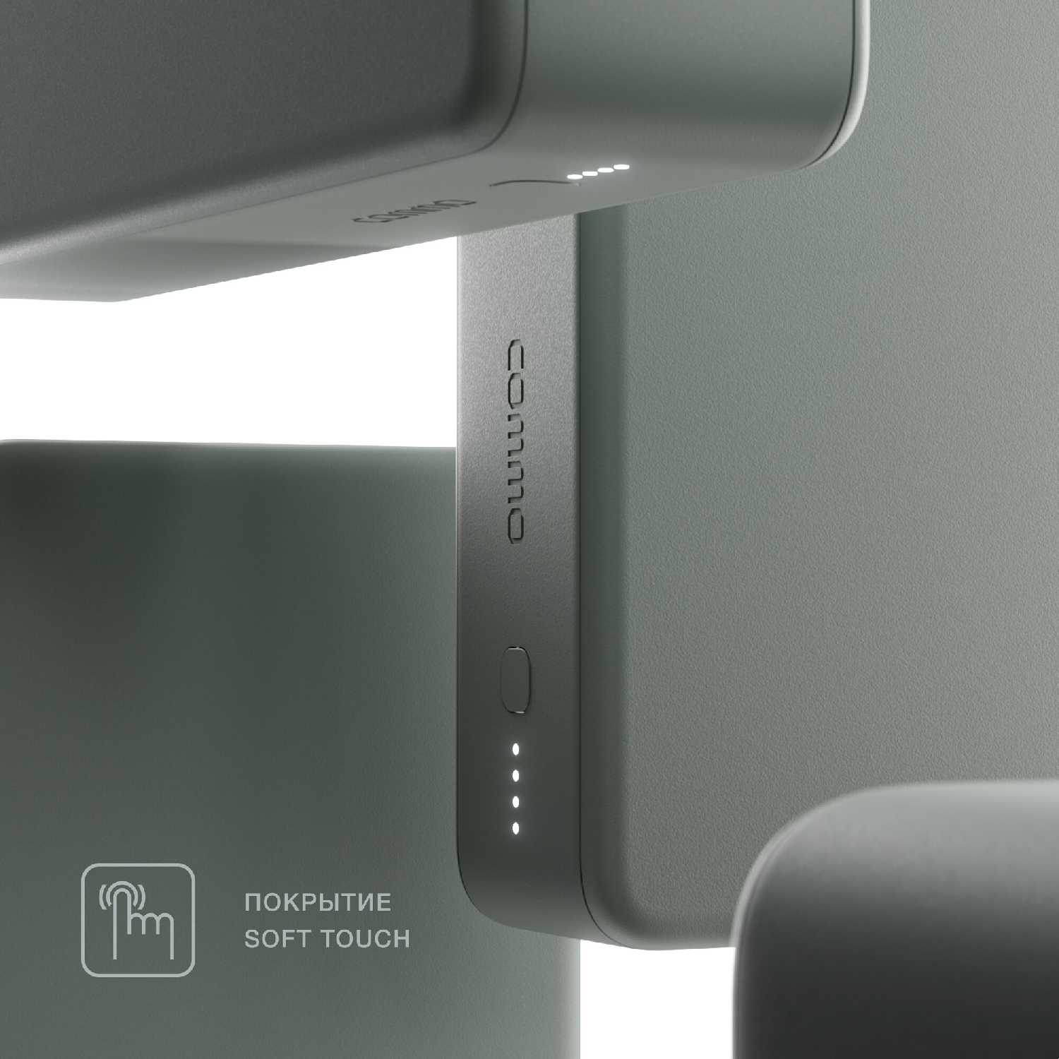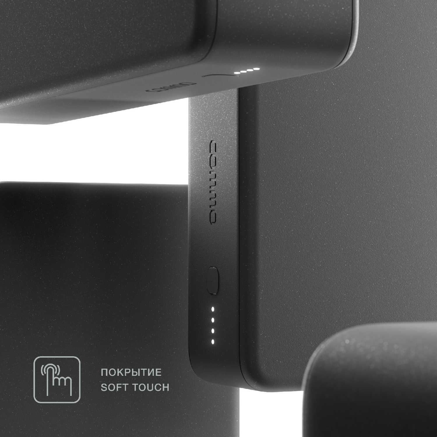 Сам повербанк выглядит монолитным, почти не видно стыков, выполнен из приятных материалов, шершавый на ощупь.