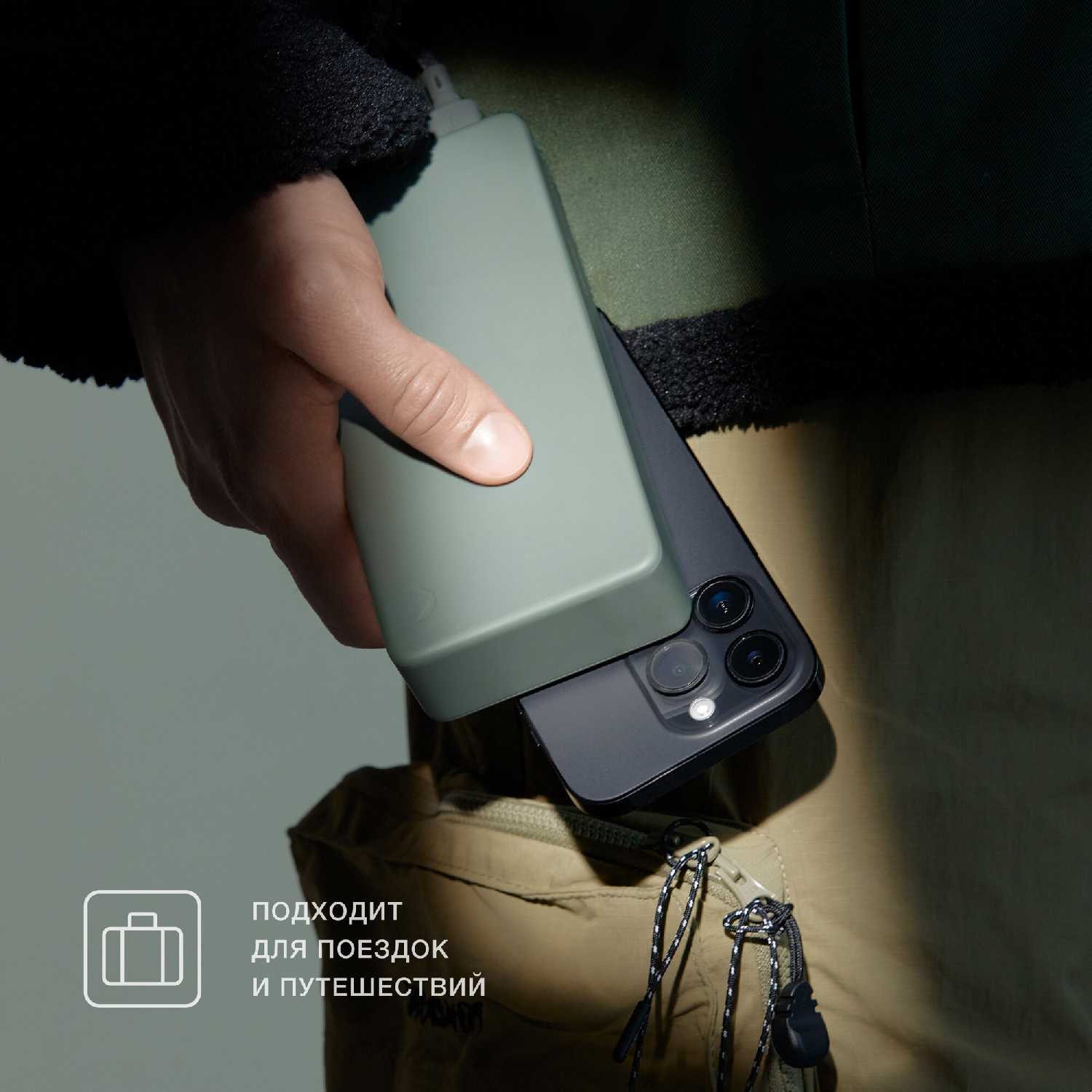 сам аккумулятор. взял большую ёмкость, думал мне не хватит, а мне хватило. теперь всегда со мной в любой поездке. цвет повербанка просто ваушный, прикольнее выглядит в жизни, чем на фото. прикупил к нему ещё блок зарядки на 35вт, за ночь заряжает полностью. - - за тактильные ощущения и цвет повербанка пришлось платить маркостью поверхности. буквально за пару использований сразу становился заляпанным. ещё немного полежит в рюкзаке, по углам стал, в моем случае, уже не зелёным, а оранжево-коричневым. да, можно просто влажной салфеткой пройтись, но делать это часто не хочется.