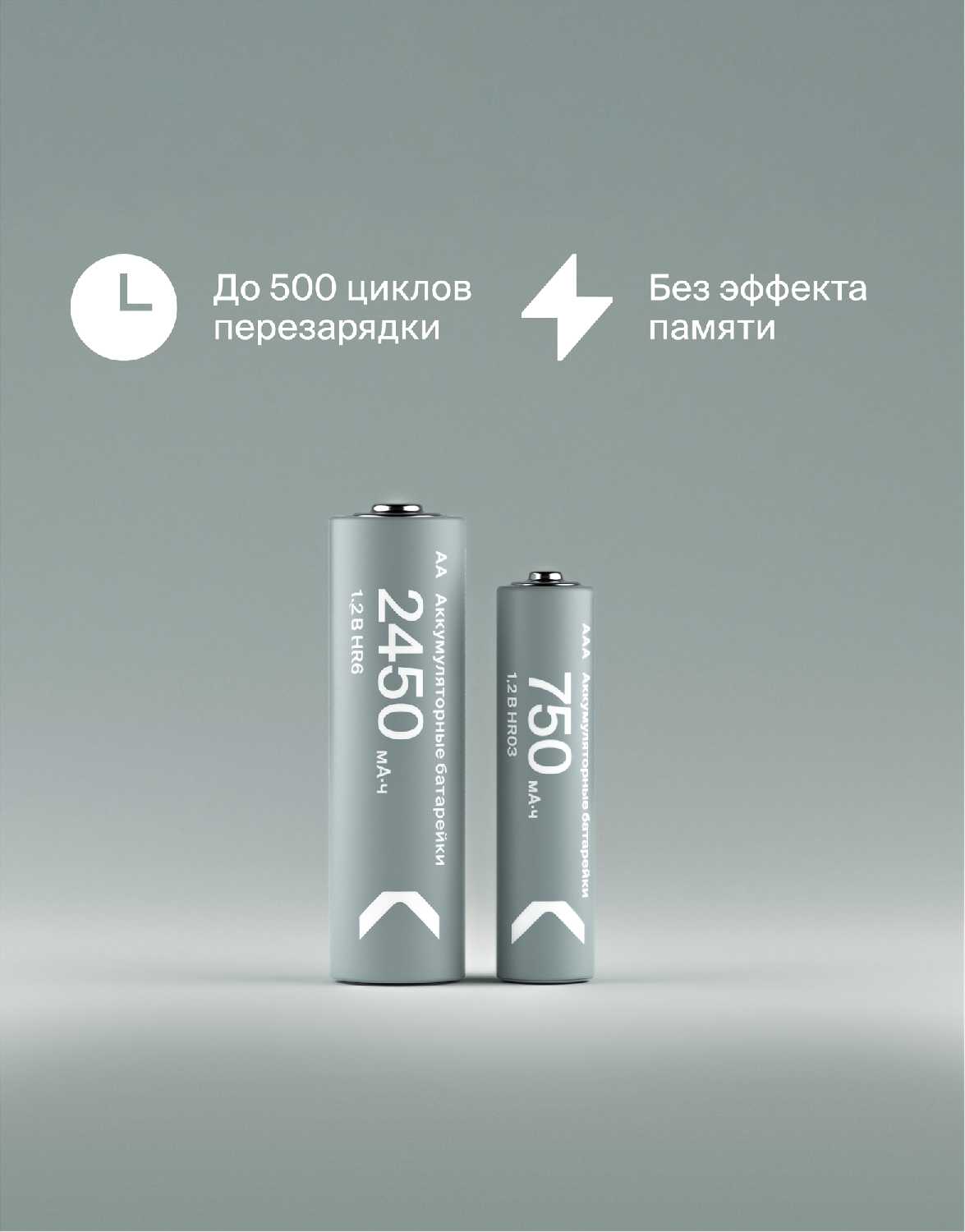 - + В одном комплекте аккумуляторы сразу двух основных типов - и АА и ААА