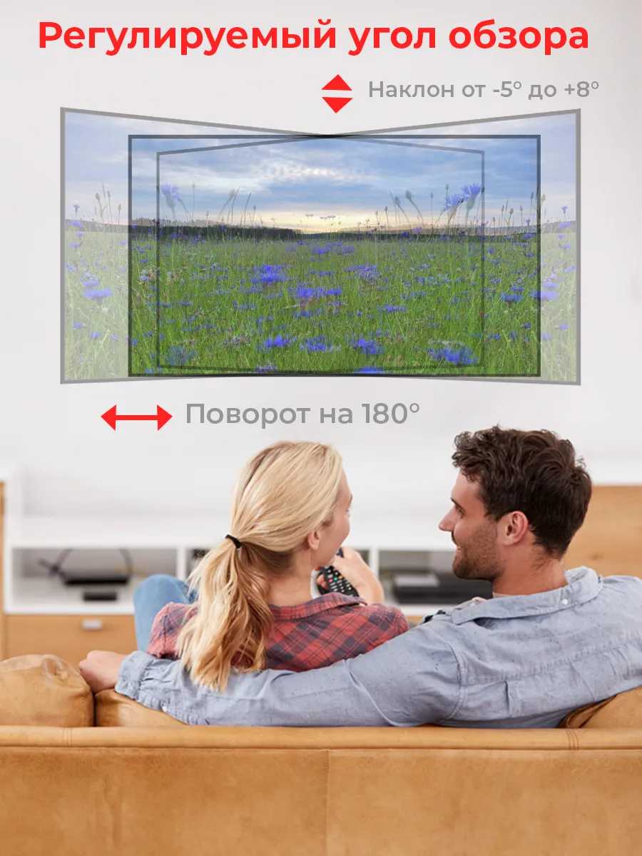 - Подходит для ТВ и мониторов разных размеров (32-65 дюймов).
