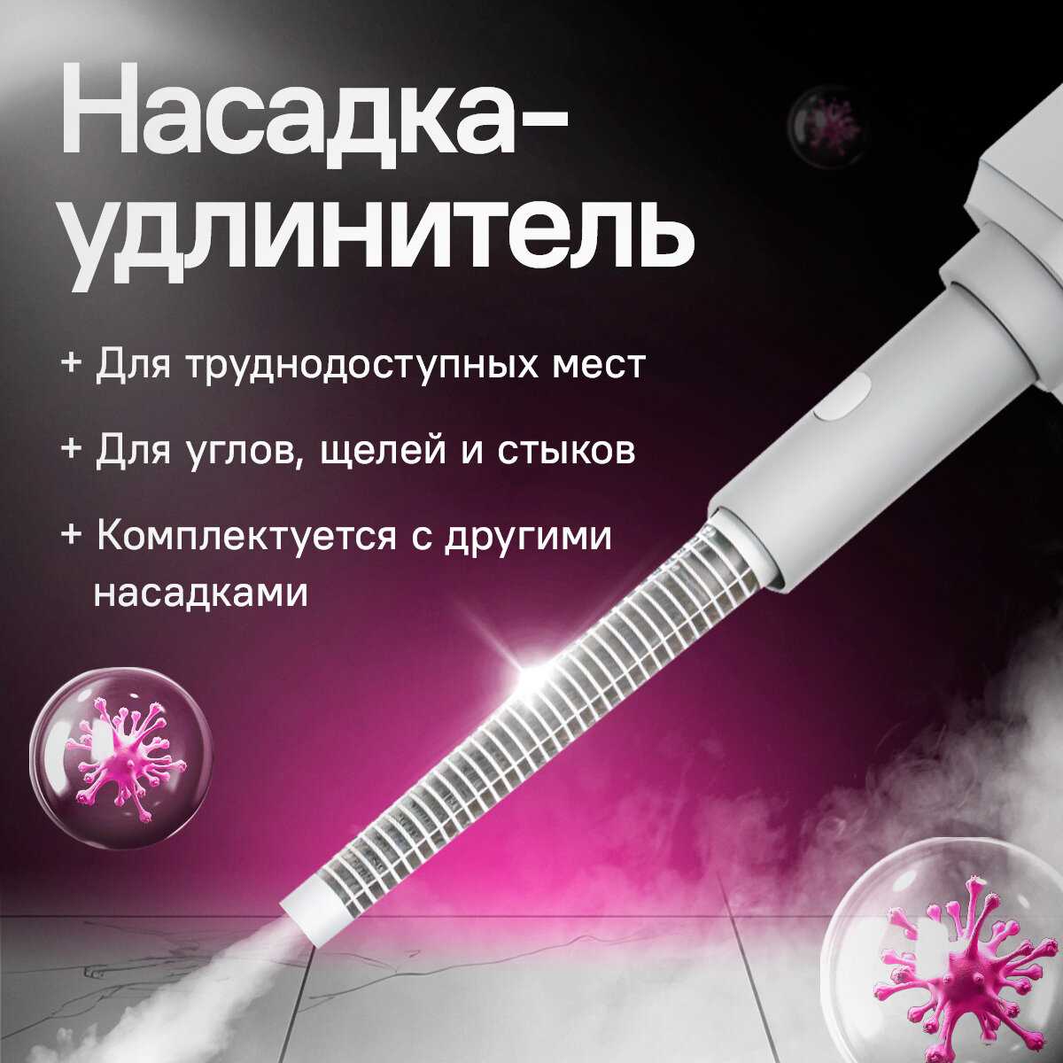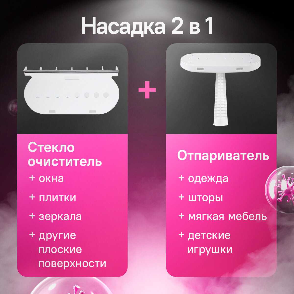 - Насадка для отпаривания одежды и тканей удаляет складки и пятна йогурта, расширяя применение за пределы полов.