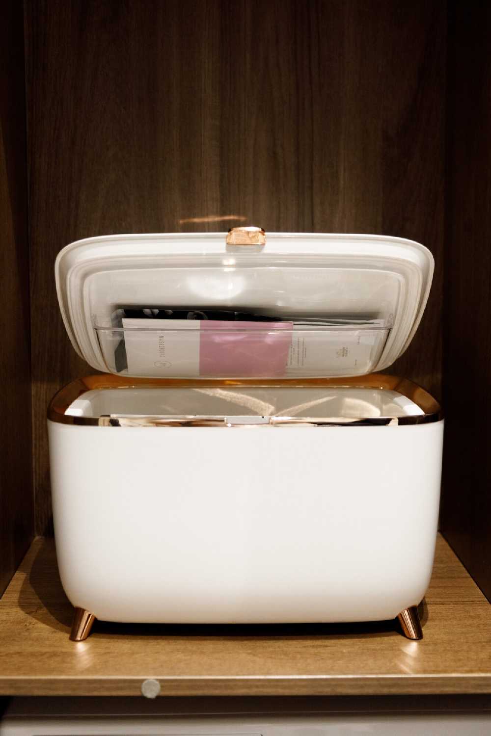 - + Достаточно большой,вся косметика поместилась вместе с масками,эстетично выглядит