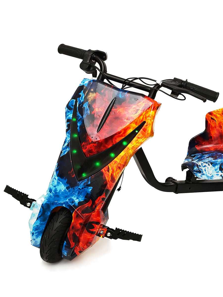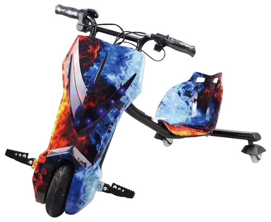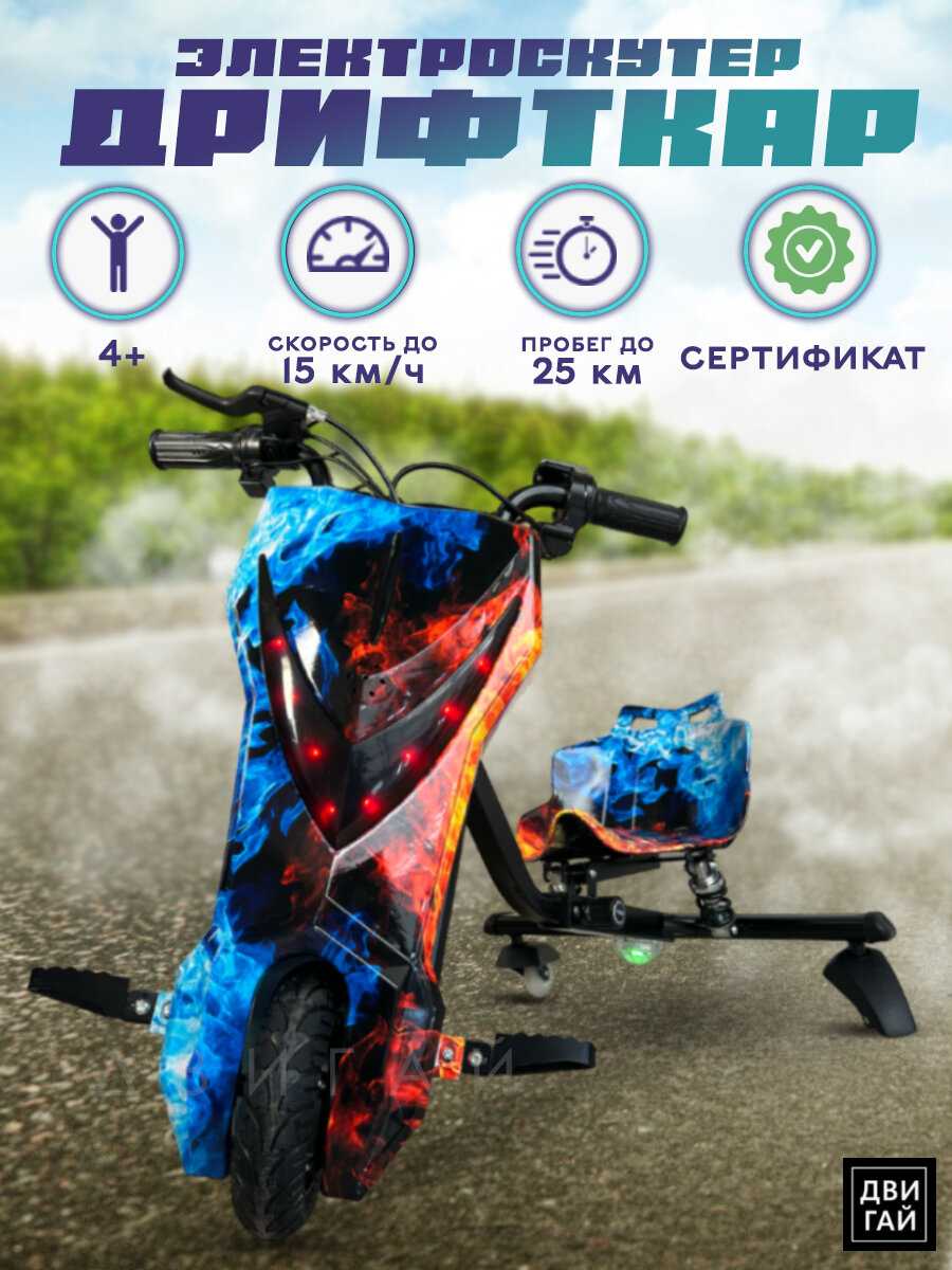 Дополнительная информация : | Максимальная скорость до 14 км/ч Запас непрерывного хода до 120 минут Бесшумный мотор, мощностью 250W Литий-ионный АКБ на 12V, ёмкостью 4.4Ач Рама выполнена из сварной стали Переднее колесо цельнолитое Задние колёса двойные роликовые с уклоном для дрифта и вращения Передний тормоз Мягкие резиновые грипсы Складные пеги для ног |