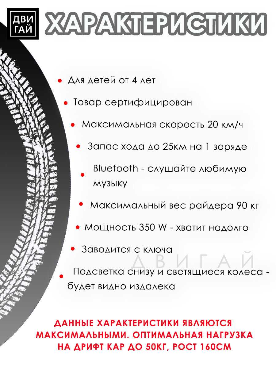 Опции : | MP3, USB-вход, bluetooth, microSD-вход, светящиеся фары |