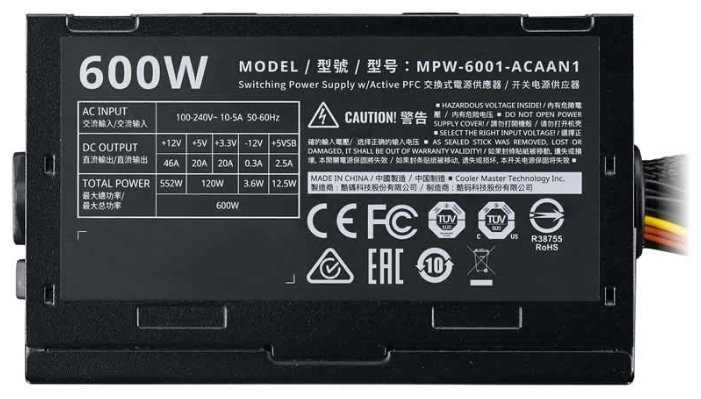 Отзывы о Блок питания Cooler Master Elite V3 600W