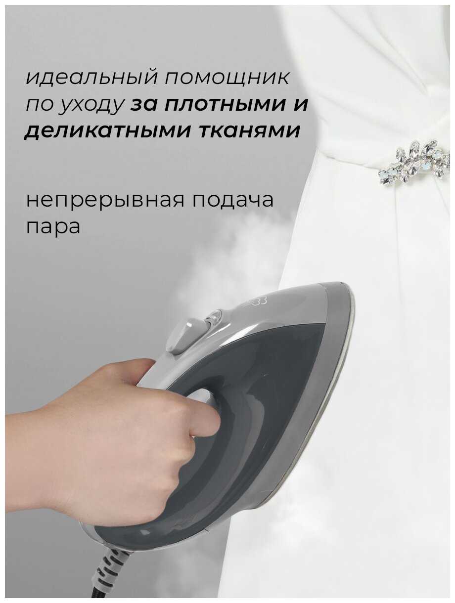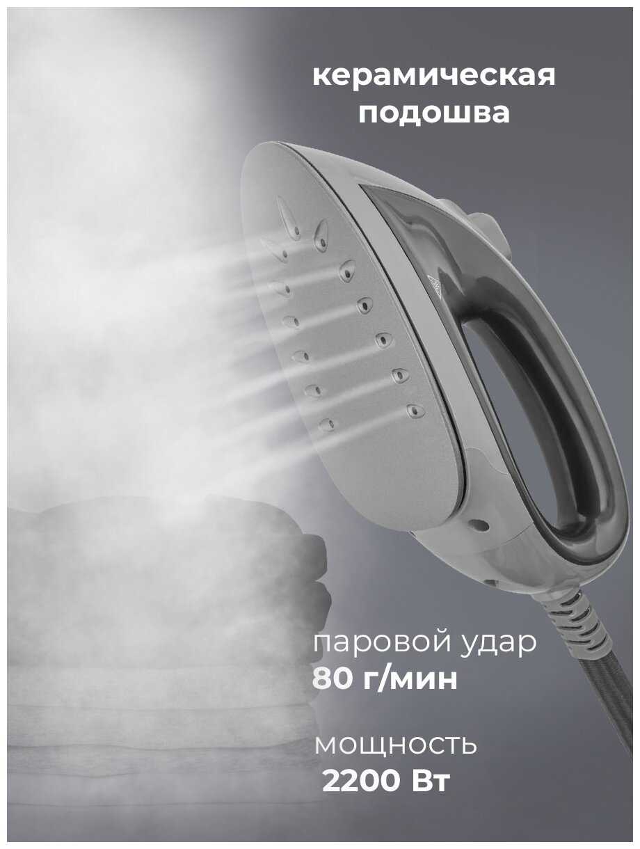 Довольны приобретением! Супер система. Утюг с керамическим покрытием подошвы, функция отпаривания с хорошей мощностью, также присутствует не большая доска на которой удобно гладить вещи.