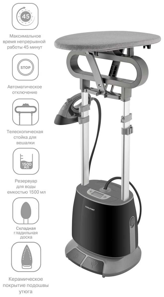 - + занимает мало места, позволяет быстро прогладить одежду утюгом или отпарить складки.