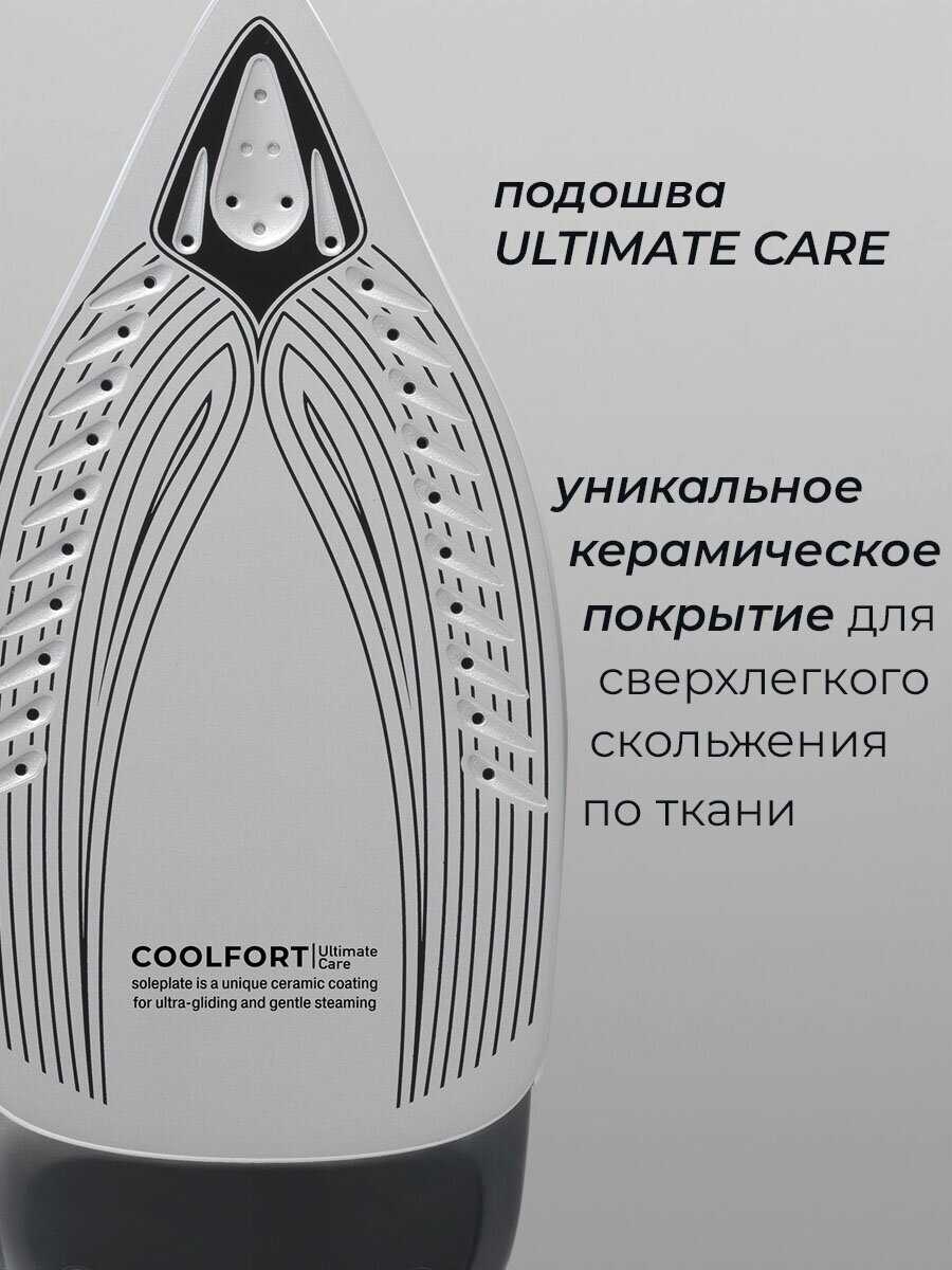 Керамическая подошва отлично скользит, узкий носик позволяет хорошо разглаживать. Вся конструкция надежная, подача пара отличная.