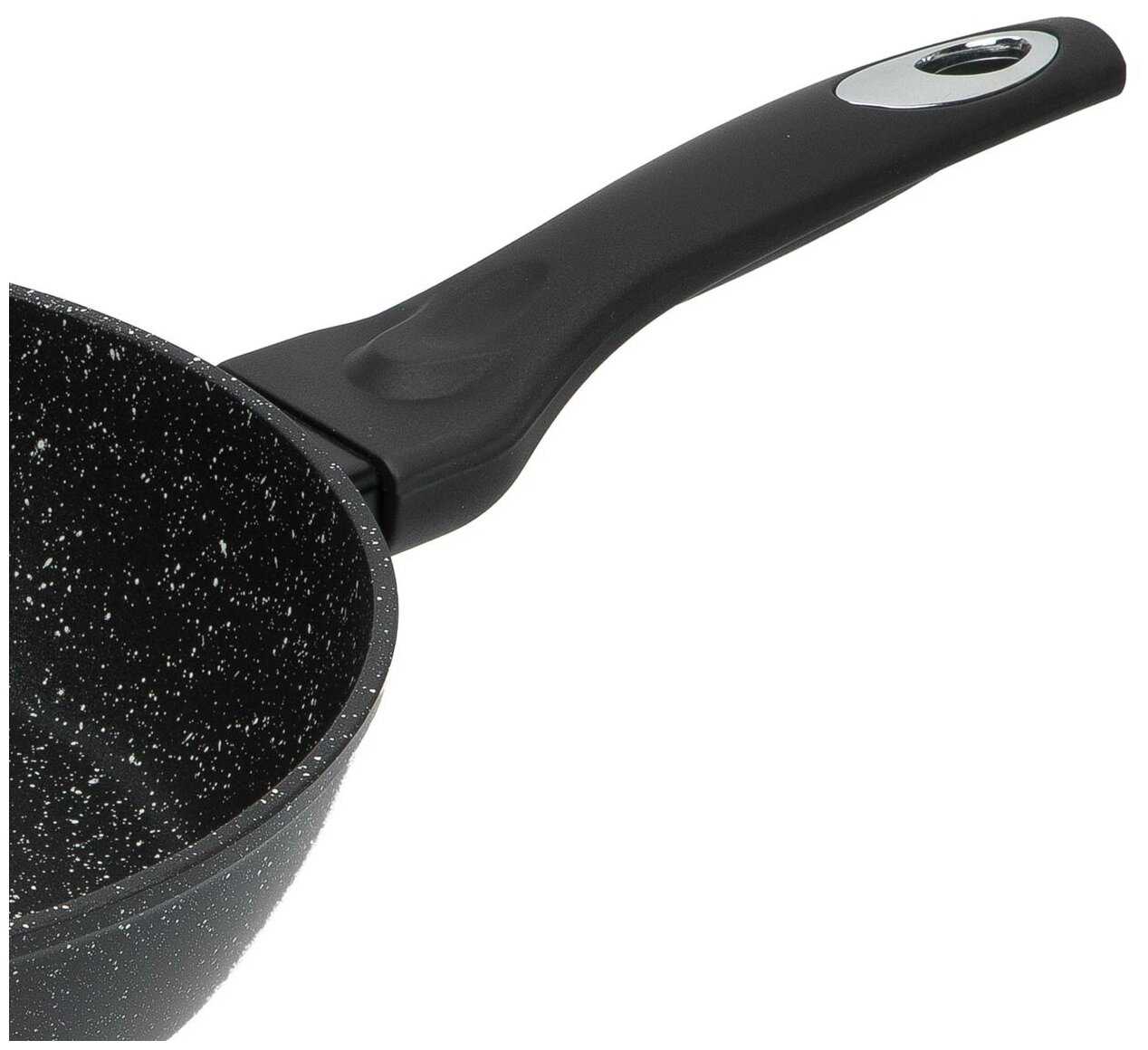 - + Идеально для тушения продуктов. Ручка не нагревается вместе со сковородой.