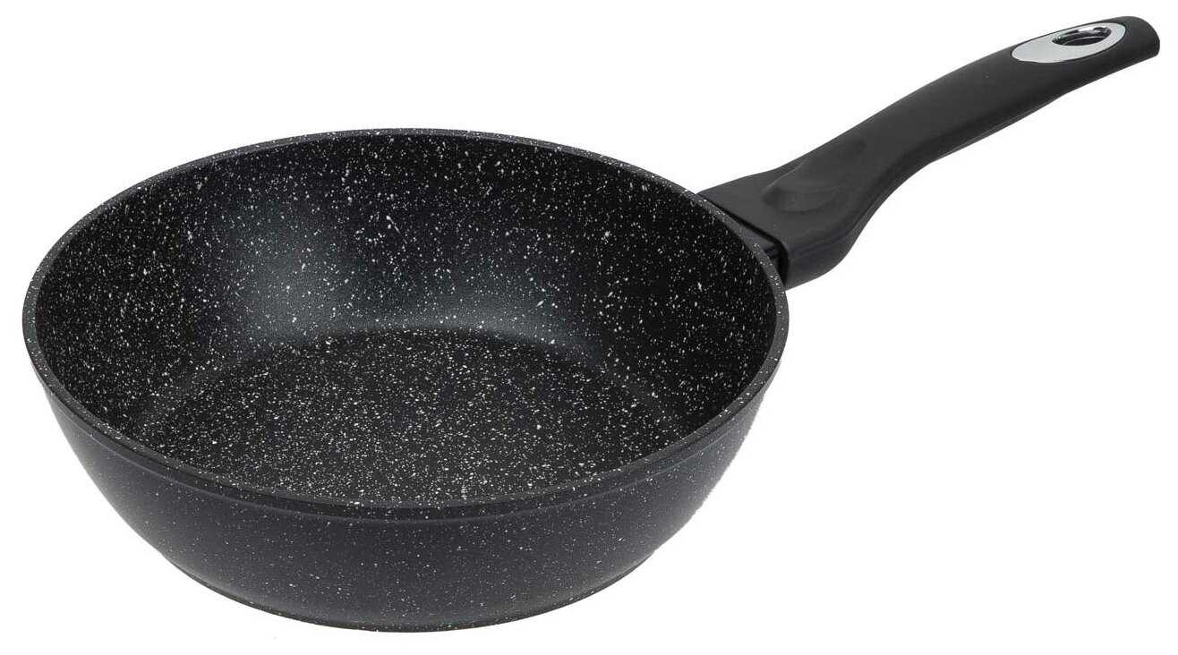 - + Замечательная сковорода, не пригорает, отлично моется. не тяжелая,что особенно нравится высокие бортики, я покупаю уже вторую сковороду, первая была на 20см, рекомендую.