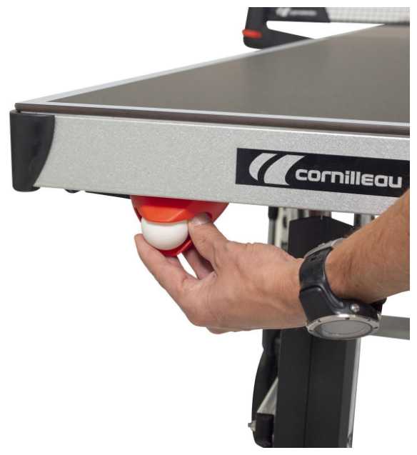 | Дополнительная информация : | сетка складывается при складывании стола и занимает рабочее положение при раскладывании стола автоматически, места для хранения 4 ракеток и 6 мячей инструмент для ведения счета ниши для аксессуаров подстаканники держатели мячей транспортировочная ручка, колеса сдвоенные 200 x 32 мм c тормозным механизмом для двух пар |