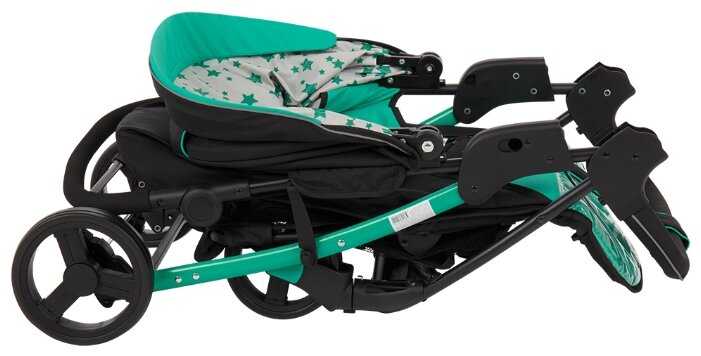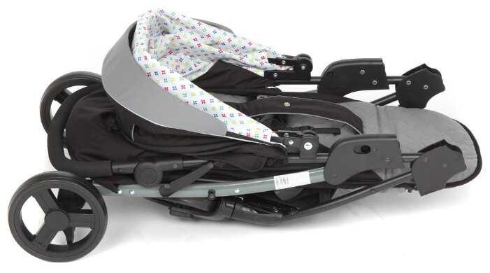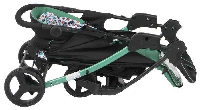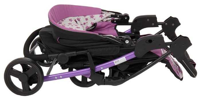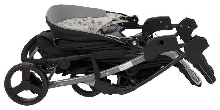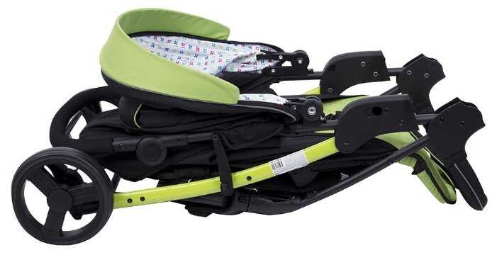 Чтобы сложить коляску нужно проделать несколько манипуляций: разложить спинку сидения до положения лежа, зафиксировать передние колеса, вынуть все из корзины коляски, и двумя(!) руками сложить в книжку. Порой это весьма неудобно и долго, особенно в дождь, и учитывая, что на руках маленький ребенок! :)