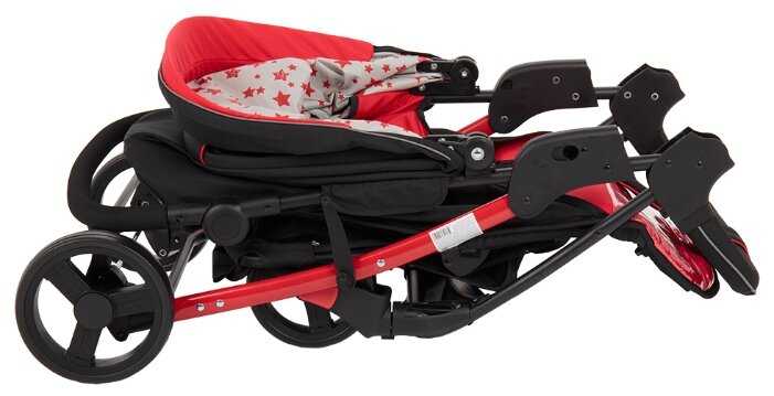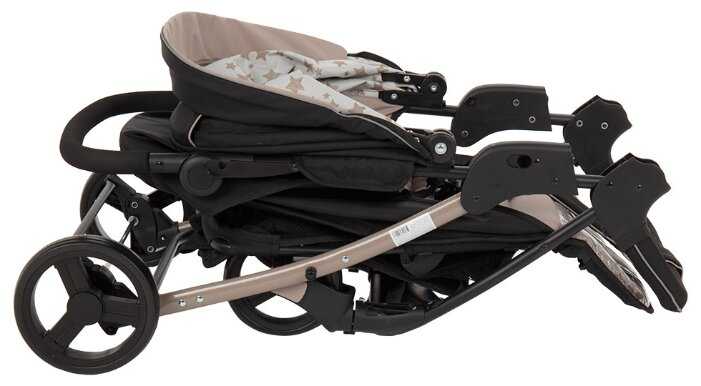 - + Дизайн классный, качество ткани плотная достаточно, колеса резиновые это плюс, смотрится красиво. Ремни хорошо сделаны и ребёнка хорошо держит. Можно управлять одной рукой. Накидка на ноги плотная и тёплая. Подставка под ножки клеёнчатая. Легко собирается.