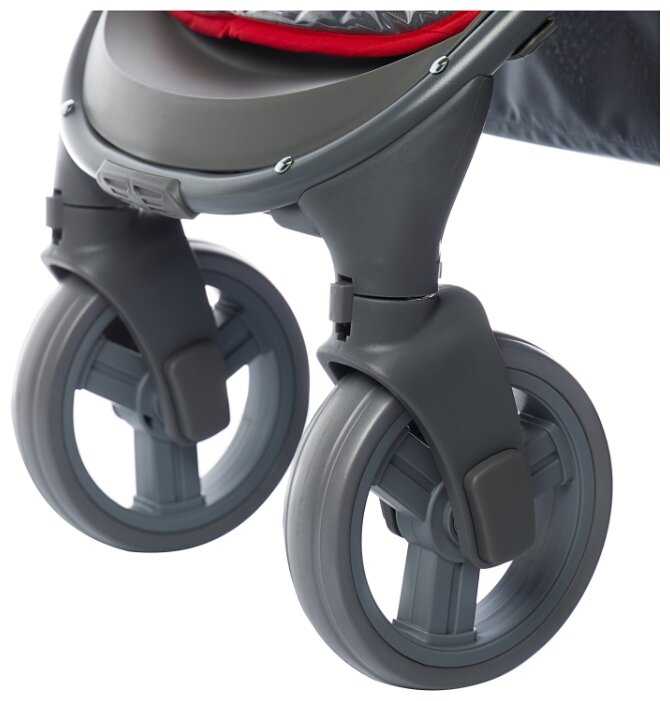 - - У колес отсутствуют амортизаторы, любая кочка, камешек, шишка еловая, и коляска не едет, не смотря на большого диаметра колеса. Спящего ребенка везти по неровной дороге невозможно, тряска сильная. Коляска предназначена для езды только по идеально ровному асфальту или по ТЦ. Механизмы крепления капора находятся на уровне головы сидящего ребенка, и царапают, бьют при движении. Через месяц использования коляска заскрипела, муж смазывал все соединения, пшикал спец.средством, ничего не помогло, скрипит сам пластик в местах трения с другими пластиковыми элементами. Тормоз расположен неудобно, при подъеме коляски на бордюр не на что опереть ногу и подтолкнуть, и в результате толкаешь за тормоз, и он конечно же, защелкивается :)