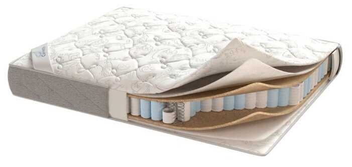 - + Довольно жёсткий, кокосовая плита с двух сторон, и объемное волокно типа струттоформа не пахнущий, сам...